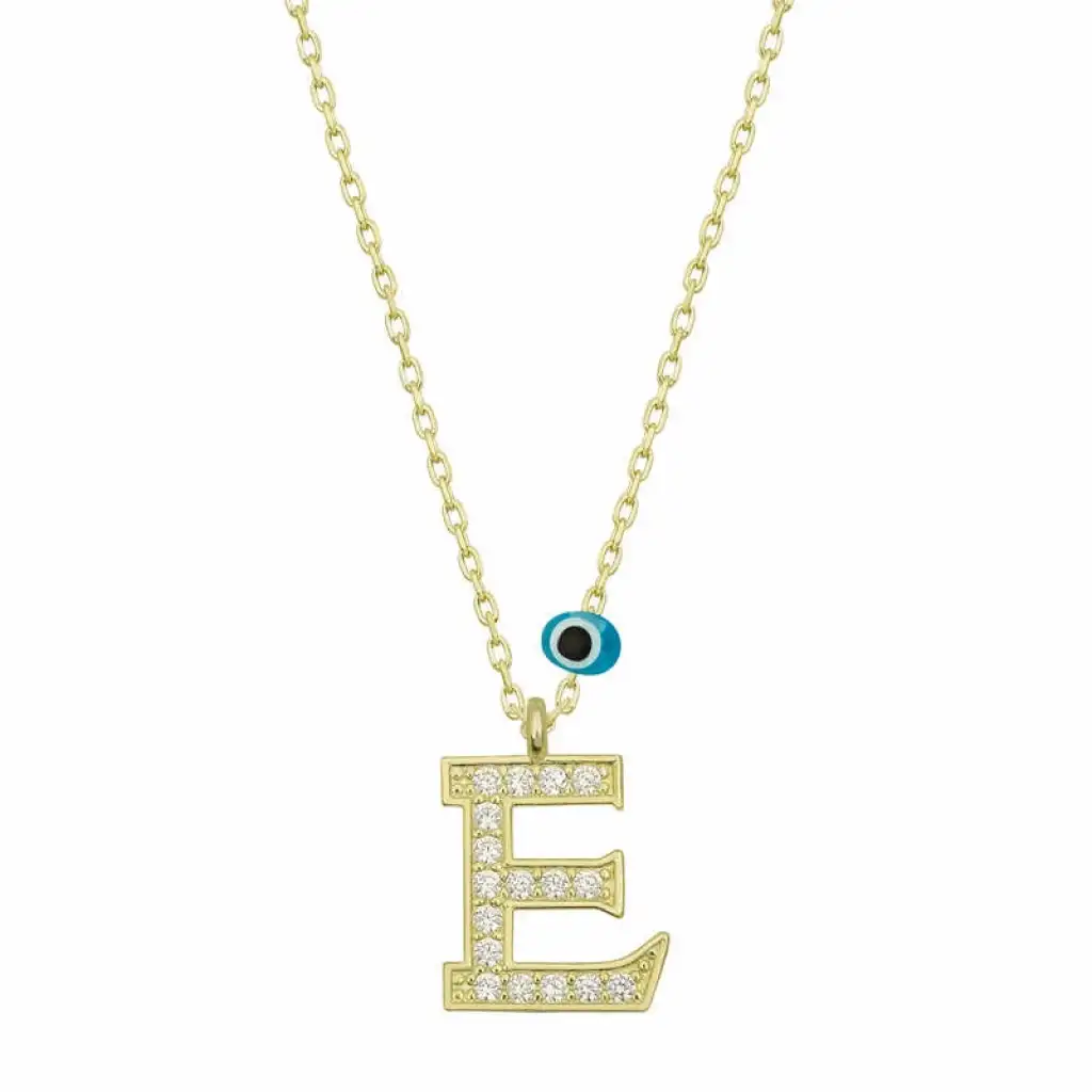 Gümüş Nazar Gold E Harfi Kadın Kolye