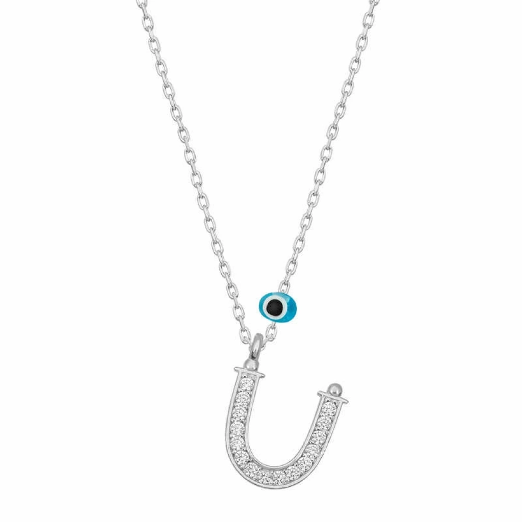 Gümüş Nazar Rodyum Ü Harfi Kadın Kolye