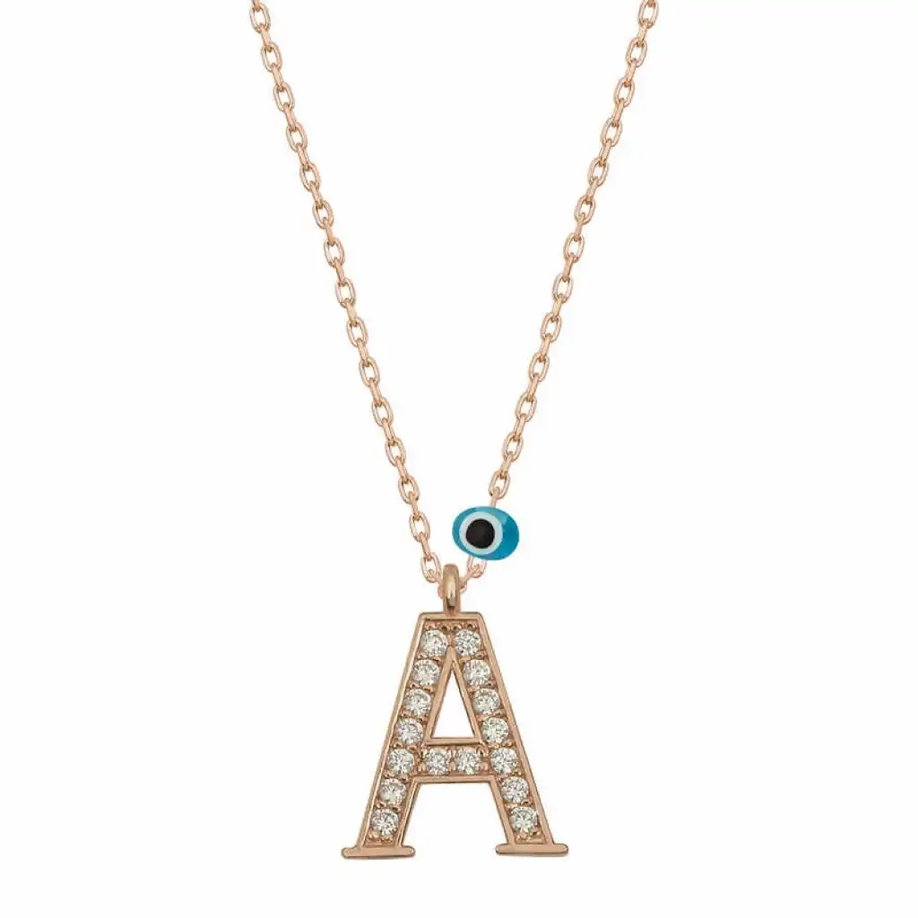 Gümüş Nazar Rose A Harfi Kadın Kolye