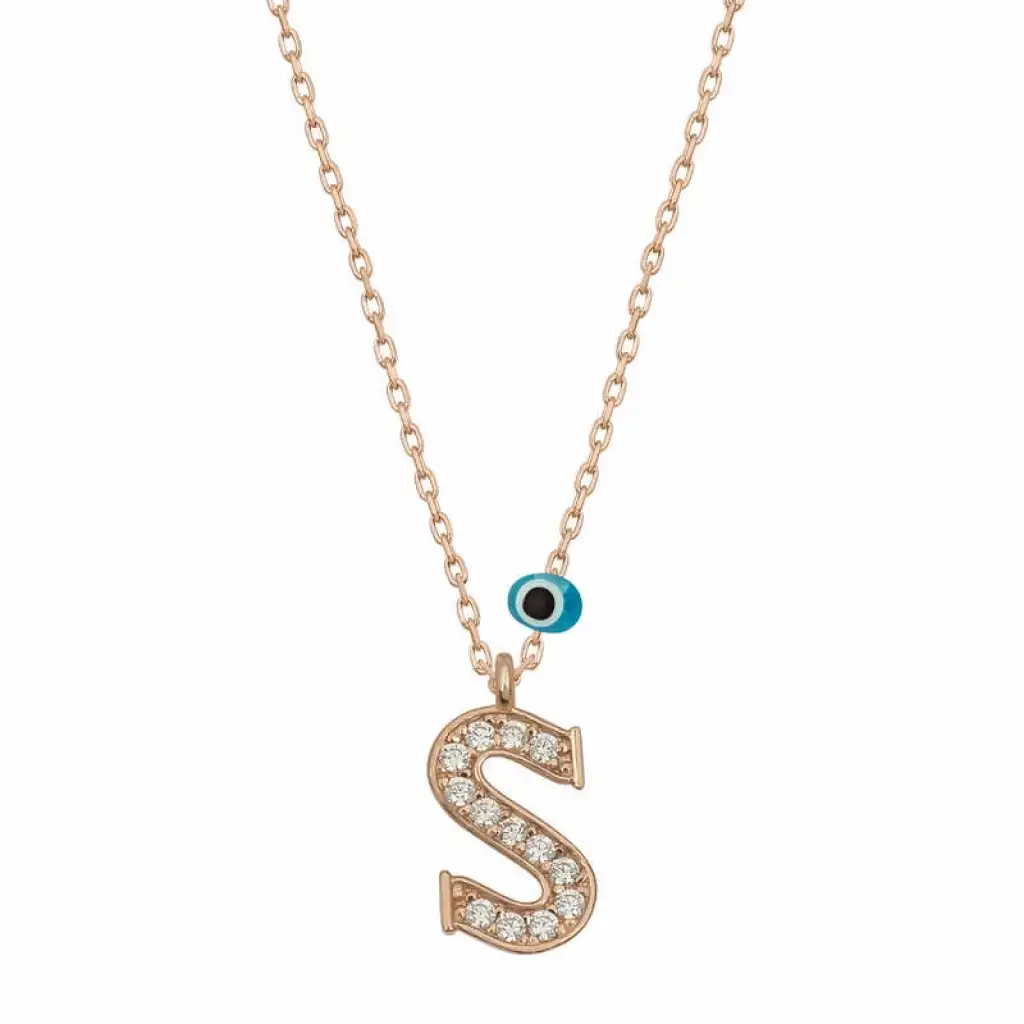 Gümüş Nazar Rose S Harfi Kadın Kolye