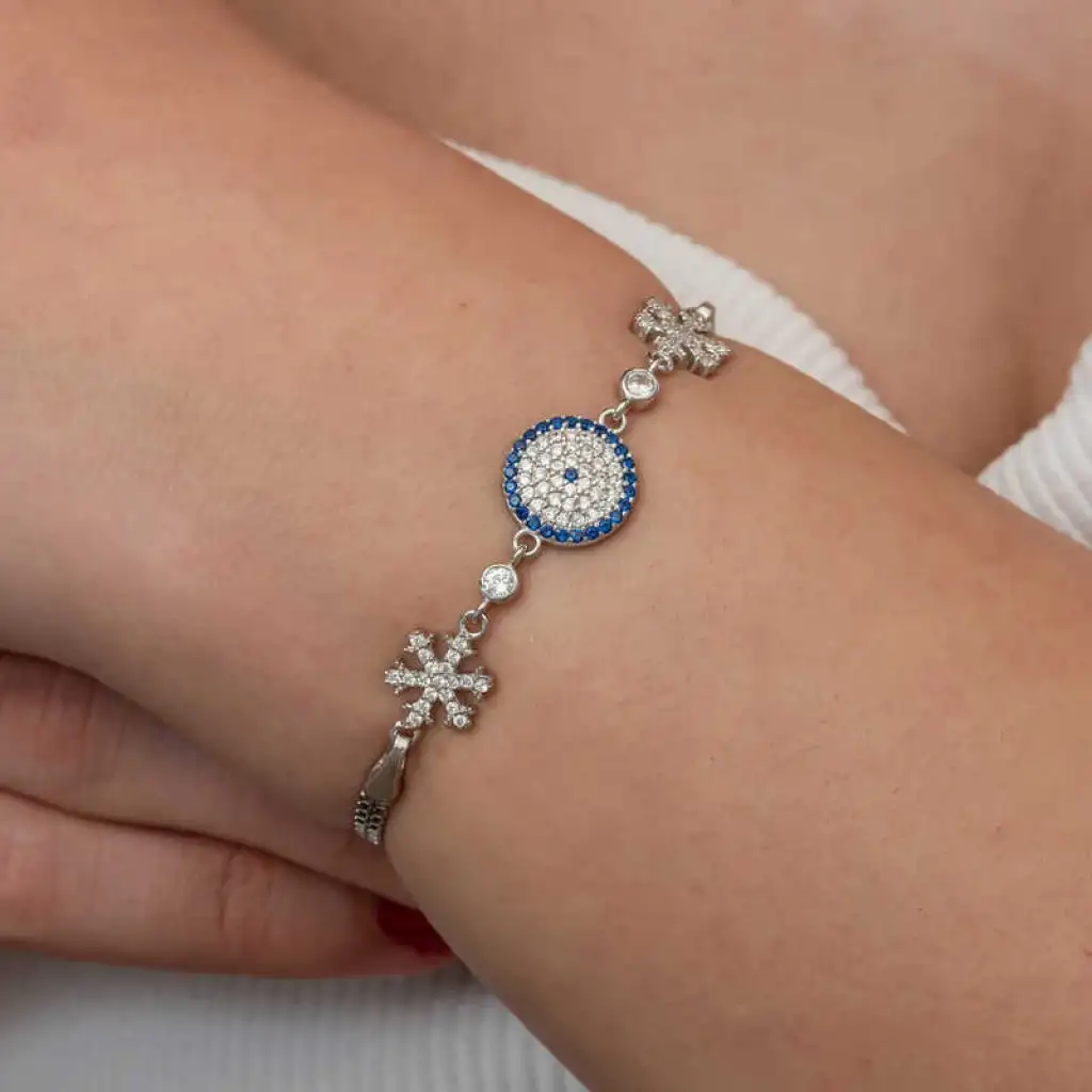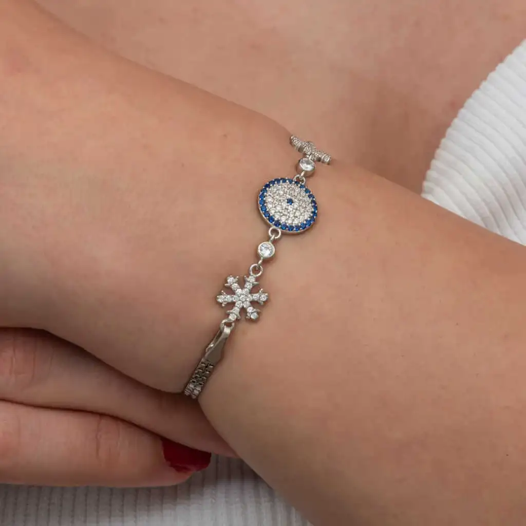 Gümüş Nazarlı Kar Tanesi Kadın Bileklik