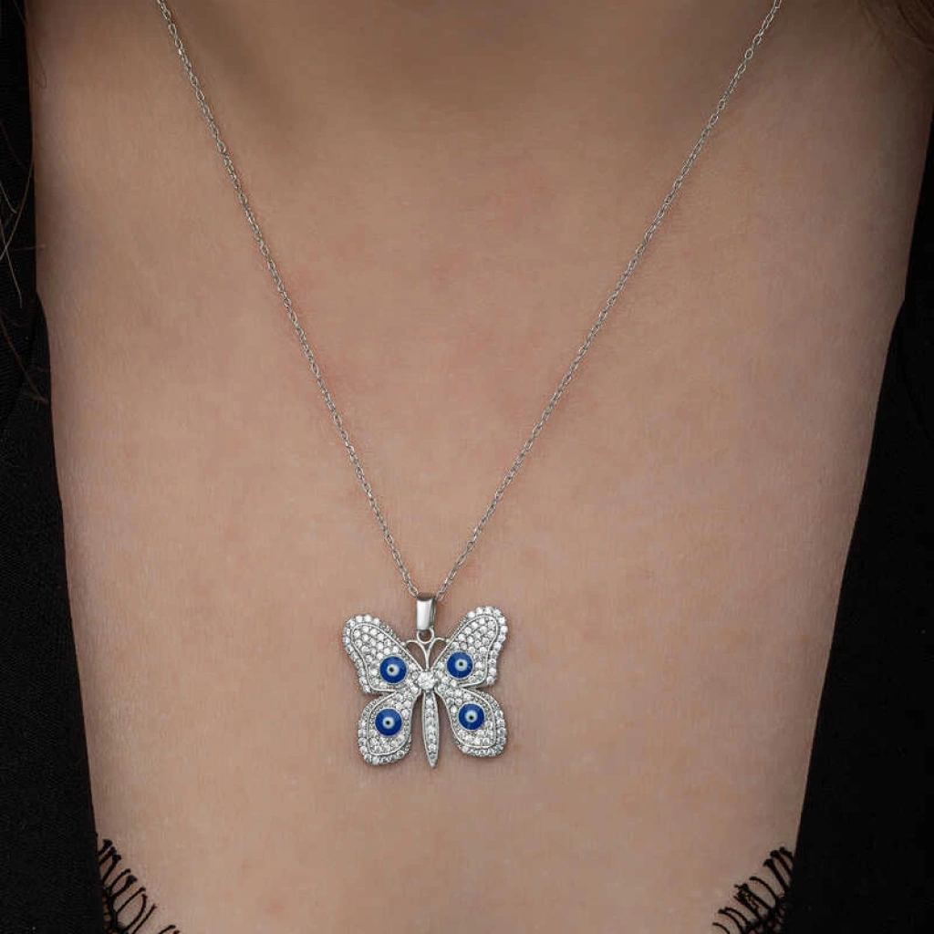 Gümüş Nazarlı Kelebek Kadın Kolye
