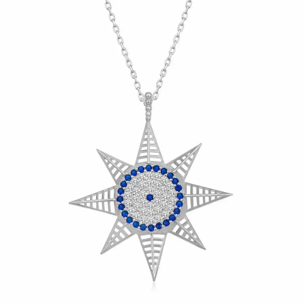 Gümüş Nazarlı Kutup Yıldızı Kadın Kolye