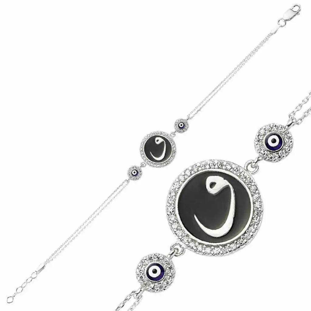 Mineden yapılmış nazarlı bu eşsiz tasarım vav bileklik 925 ayar gümüşten imal edilmiştir. Gümüş üzerine rodyum kaplama yapılmıştır, rodyum kaplama yapılan tüm bileklikler modelleri parlaklığını uzun süre muhafaza eder, oksitlenmesi gecikir. Bu gümüş bayan vav bilekliğin üzerinde bulunan taşlar zirkondur. Nazar deseni mine ile yapılmıştır. Bileklik uzunluğu bilek kalınlığına göre ayarlanabilmesini sağlayan uzatma zinciri vardır. En fazla 21 cm’ye kadar uzayabilir. Bütün bayan bileklik modellerimiz el emeği ile üretilmiştir. ve değerli taşlar nedeniyle ürün ağırlığında ± %10 sapma olabilmektedir.