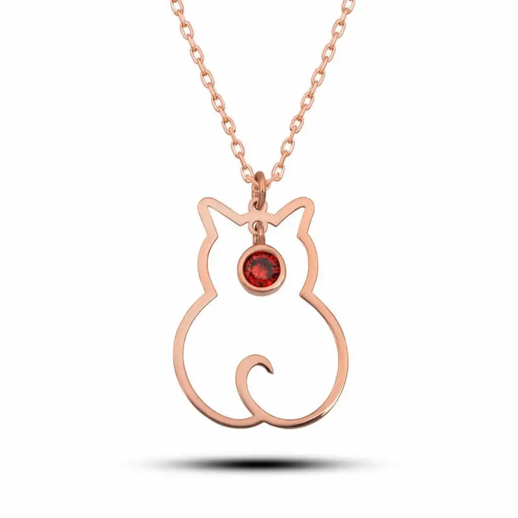 Her bir doğum taşı, belli bir ayla özdeşleşmiştir. Ocak ayı doğum taşı garnet, canlılık, tutku ve güven duygusunu ifade eder. Kırmızı, pembe, yeşil, turuncu, sarı renk yelpazesine sahip taş latince nar tanesi anlamına gelmektedir. Taşın kansızlık, kireçlenme ve romatizma hastalıklarına iyi geldiğine inanılır. Evlerimizin sevimli neşe kaynağı kediler, temiz olmalarının yanı sıra masumiyetin simgesidir. Asil ve mantıklı bir kişiliğe, mükemmel sezgilere ve akılcı bir duyarlılığa sahiptirler. Özel günlerin en tercih edilen hediye seçeneklerinden olan gümüş takılar, sevdiklerini mutlu etmek ve onlara her an yanlarında taşıyabilecekleri bir hediye vermek isteyenler için tasarlandı. Masumiyetin simgesi olan kedi figürlü gümüş kolye modelini kız kardeşinize, sevgilinize ya da arkadaşlarınıza armağan edebilirsiniz. Garnet taşlı kedi kadın kolye modeli 925 ayar gümüşten imal edilmiştir. Gümüş üzerine rose kaplama yapılmıştır. Rose kaplama yapılan gümüş kedi kolye modelleri parlaklığını uzun süre muhafaza eder ve oksitlenmesi gecikir. Kolye üzerinde bulunan tüm taş garnettir. Gümüş olan zincir boyu ortalama 45 cm'dir. Gümüş kadın kedi kolye diğer tüm gümüş kadın kolye modellerinde olduğu gibi el emeği ile üretilmiştir. Gümüş ve değerli taşlar nedeniyle belirtilen ortalama ürün ağırlığında ± %10 sapma olabilmektedir.