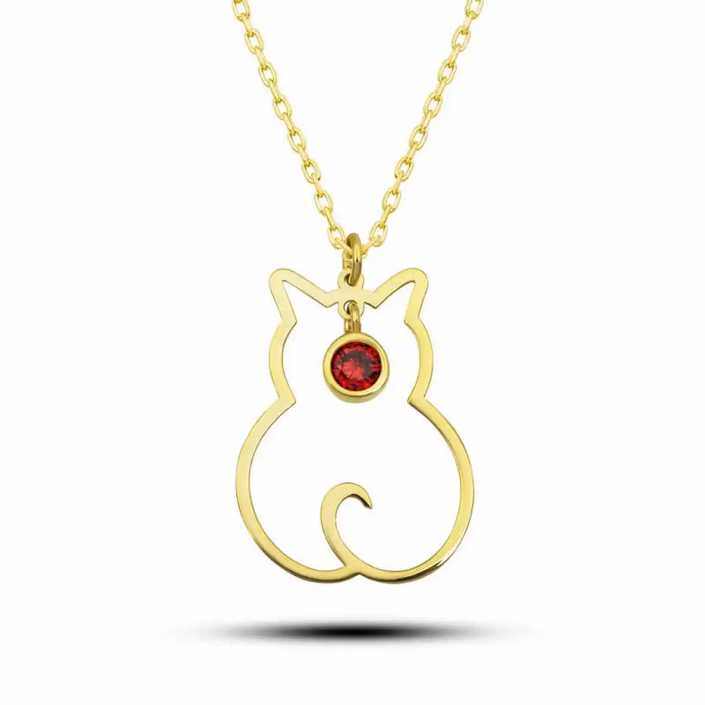 Her bir doğum taşı, belli bir ayla özdeşleşmiştir. Ocak ayı doğum taşı garnet, canlılık, tutku ve güven duygusunu ifade eder. Kırmızı, pembe, yeşil, turuncu, sarı renk yelpazesine sahip taş latince nar tanesi anlamına gelmektedir. Taşın kansızlık, kireçlenme ve romatizma hastalıklarına iyi geldiğine inanılır. Evlerimizin sevimli neşe kaynağı kediler, temiz olmalarının yanı sıra masumiyetin simgesidir. Asil ve mantıklı bir kişiliğe, mükemmel sezgilere ve akılcı bir duyarlılığa sahiptirler. Özel günlerin en tercih edilen hediye seçeneklerinden olan gümüş takılar, sevdiklerini mutlu etmek ve onlara her an yanlarında taşıyabilecekleri bir hediye vermek isteyenler için tasarlandı. Masumiyetin simgesi olan kedi figürlü gümüş kolye modelini kız kardeşinize, sevgilinize ya da arkadaşlarınıza armağan edebilirsiniz. Garnet taşlı kedi kadın kolye modeli 925 ayar gümüşten imal edilmiştir. Gümüş üzerine gold kaplama yapılmıştır. Gold kaplama yapılan gümüş kedi kolye modelleri parlaklığını uzun süre muhafaza eder ve oksitlenmesi gecikir. Kolye üzerinde bulunan tüm taş garnettir. Gümüş olan zincir boyu ortalama 45 cm'dir. Gümüş kadın kedi kolye diğer tüm gümüş kadın kolye modellerinde olduğu gibi el emeği ile üretilmiştir. Gümüş ve değerli taşlar nedeniyle belirtilen ortalama ürün ağırlığında ± %10 sapma olabilmektedir.