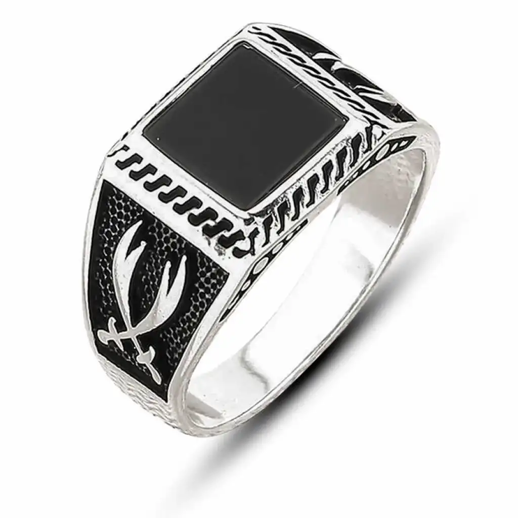 Gümüş Oniks Taşlı Kılıç Erkek Yüzük