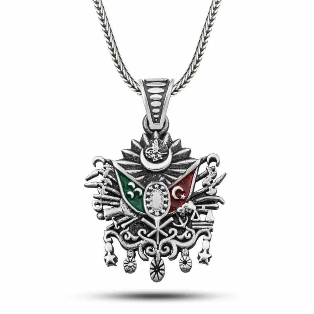 Tarihin ihtişamını stilinize taşıyın!Osmanlı İmparatorluğu'nun görkemli mirasını modern tasarım ile buluşturan bu özel kolye,güçlü duruşunuzu ve zarif zevkinizi yansıtmak için tasarlandıOsmanlı Devlet Arması,ihtişamı ve gücü temsil eder.Bu kolye,tarih tutkunları ve özgün tarzını ortaya koymak isteyen erkekler için ideal bir aksesuardır.Gümüş üzerine oksit kaplama yapılmıştır.Oksit kaplama yapılan gümüş kolyeler parlaklığını uzun süre muhafaza eder,oksitlenmesi gecikir.Ürünlerimizin tamamı el emeği ile üretilmiştir. Gümüş ve değerli taşlar nedeniyle belirtilen ortalama ürün ağırlığında ± %10 sapma olabilmektedir.