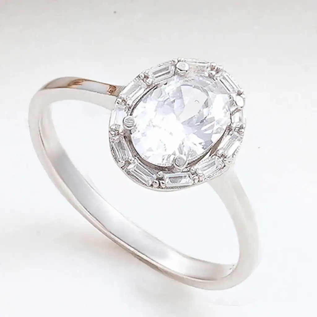 Gümüş Oval Zirkon Taşlı Kadın Yüzük