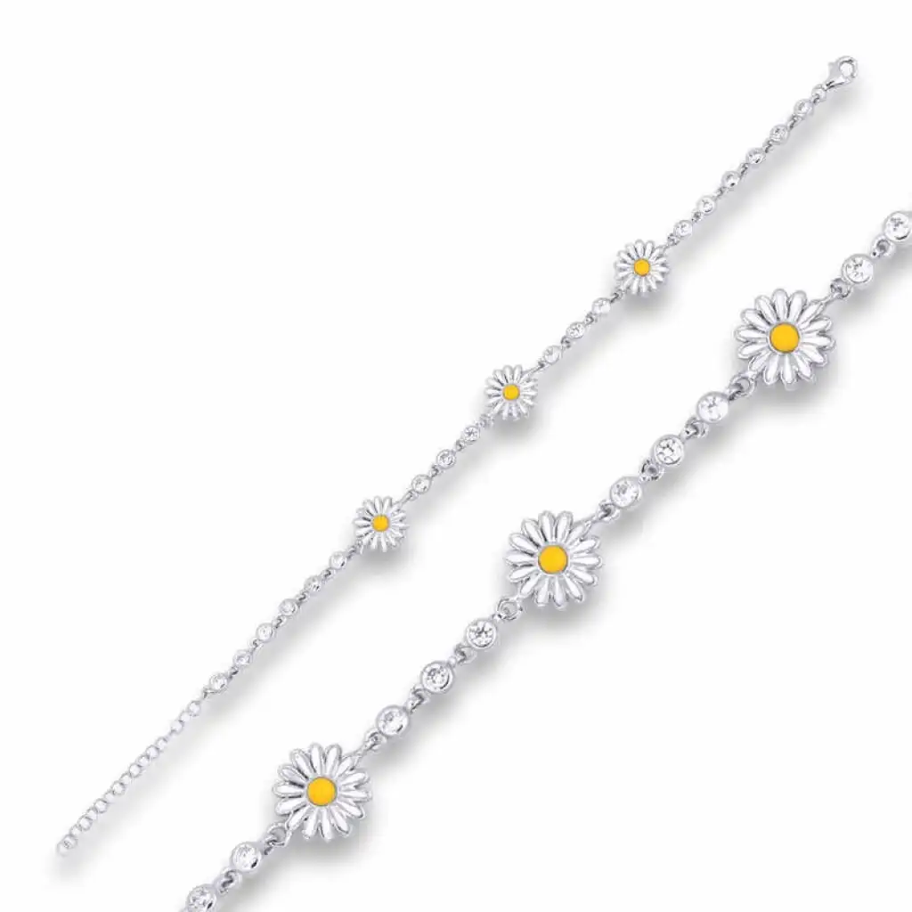Papatya çiçeği temiz sevgi anlamını ifade eder. En büyük özelliklerinden biri her sapında bir tane olmasıdır. Doğadan esinlenilerek ortaya çıkan bu ışıl ışıl bayan bileklik severek kullanabileceğiniz ve sevdiklerinize hediye edebileceğiniz harika bir tasarımdır. Gümüş Papatya bayan bileklik 925 ayar gümüşten imal edilmiştir. Bu gümüş bileklik üzerinde rodyum kaplama vardır. Rodyum kaplama yapılan ürünler parlaklığını uzun süre muhafaza eder, oksitlenmesini geciktirir. Tüm gümüş ürünlerde olduğu gibi gümüş papatya bayan bileklik modeli de el emeği ile üretilmiştir. Gümüş ve değerli taşlar nedeniyle belirtilen ortalama ürün ağırlığında ± %10 sapma olabilmektedir.