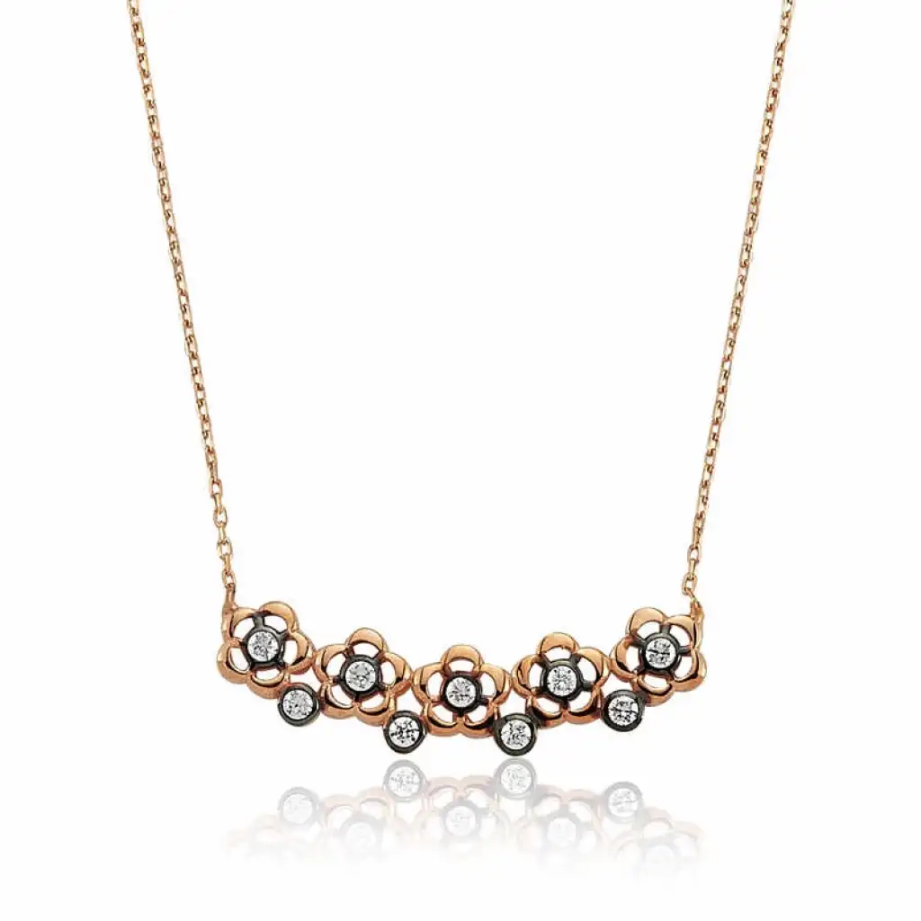 Papatya çiçeği temiz sevgi anlamını ifade eder. Sevdiklerine güzel mesajlar vermek isteyenler için ideal bir modeldir. Sevginin ve temizliğin simgesi olan bu papatya bayan kolye 925 ayar gümüşten imal edilmiştir. Gümüş üzerine rose altın kaplama yapılmıştır. Rose altın kaplama yapılan gümüş bayan kolye modelleri parlaklığını uzun süre muhafaza eder ve oksitlenmesi gecikir. Kolye üzerinde bulunan taşlar zirkondur. Gümüş olan zincir boyu ortalama 45 cm'dir. Tüm gümüş bayan kolye modellerinde olduğu gibi gümüş papatya bayan kolye modeli de el emeği ile üretilmiştir. Gümüş ve değerli taşlar nedeniyle belirtilen ürün ağırlığında ± %10 sapma olabilmektedir.