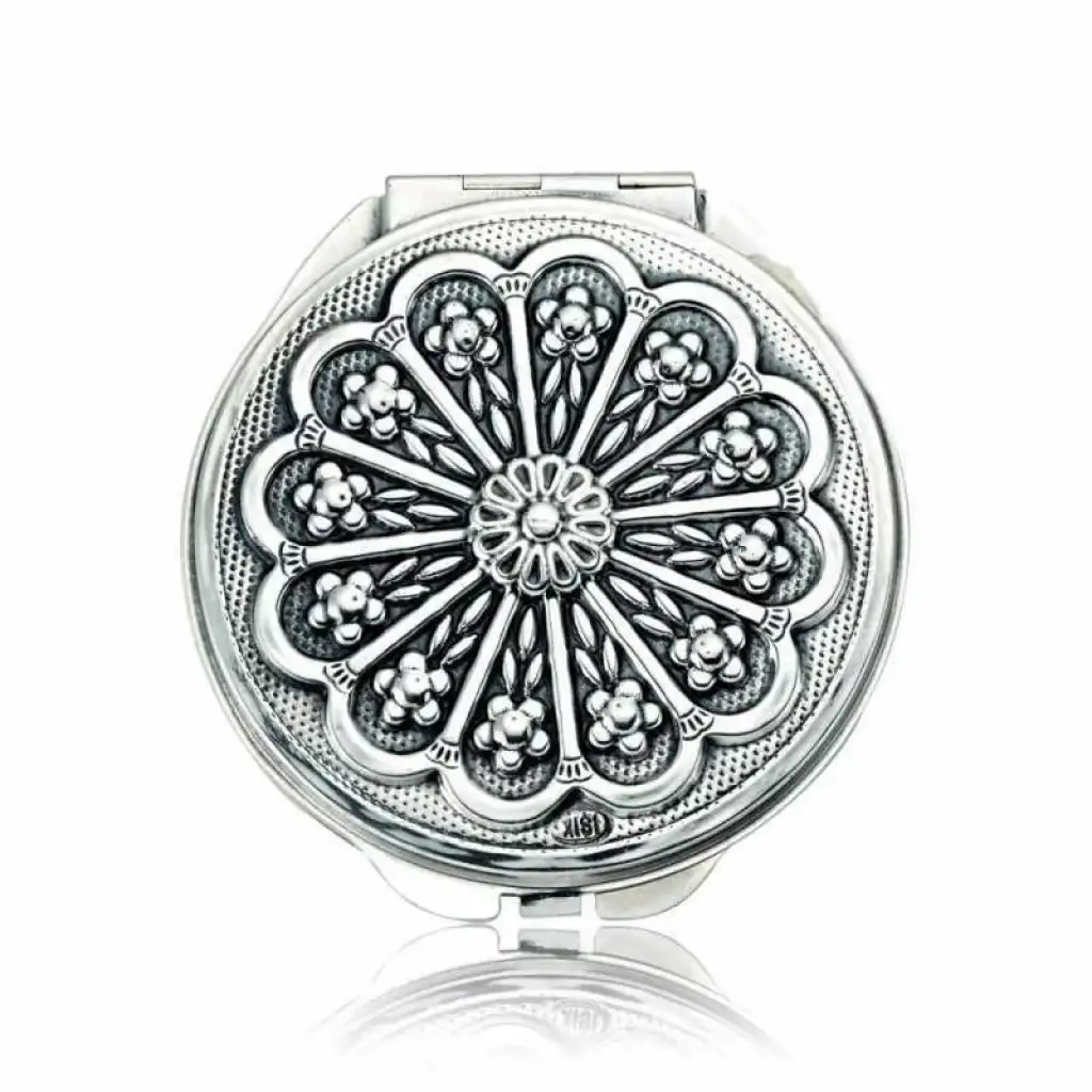 Gümüş Papatya Motifli Kapaklı El Aynası