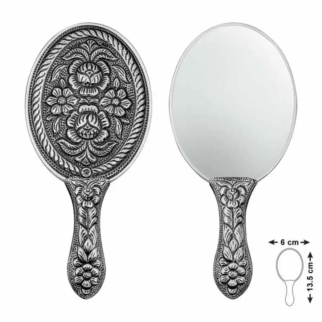 Gümüş Papatya ve Gül Motifli El Aynası