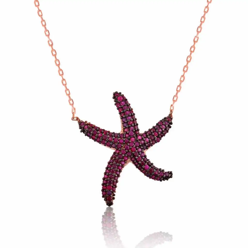 Gümüş Pembe Deniz Yıldızı Bayan Kolye