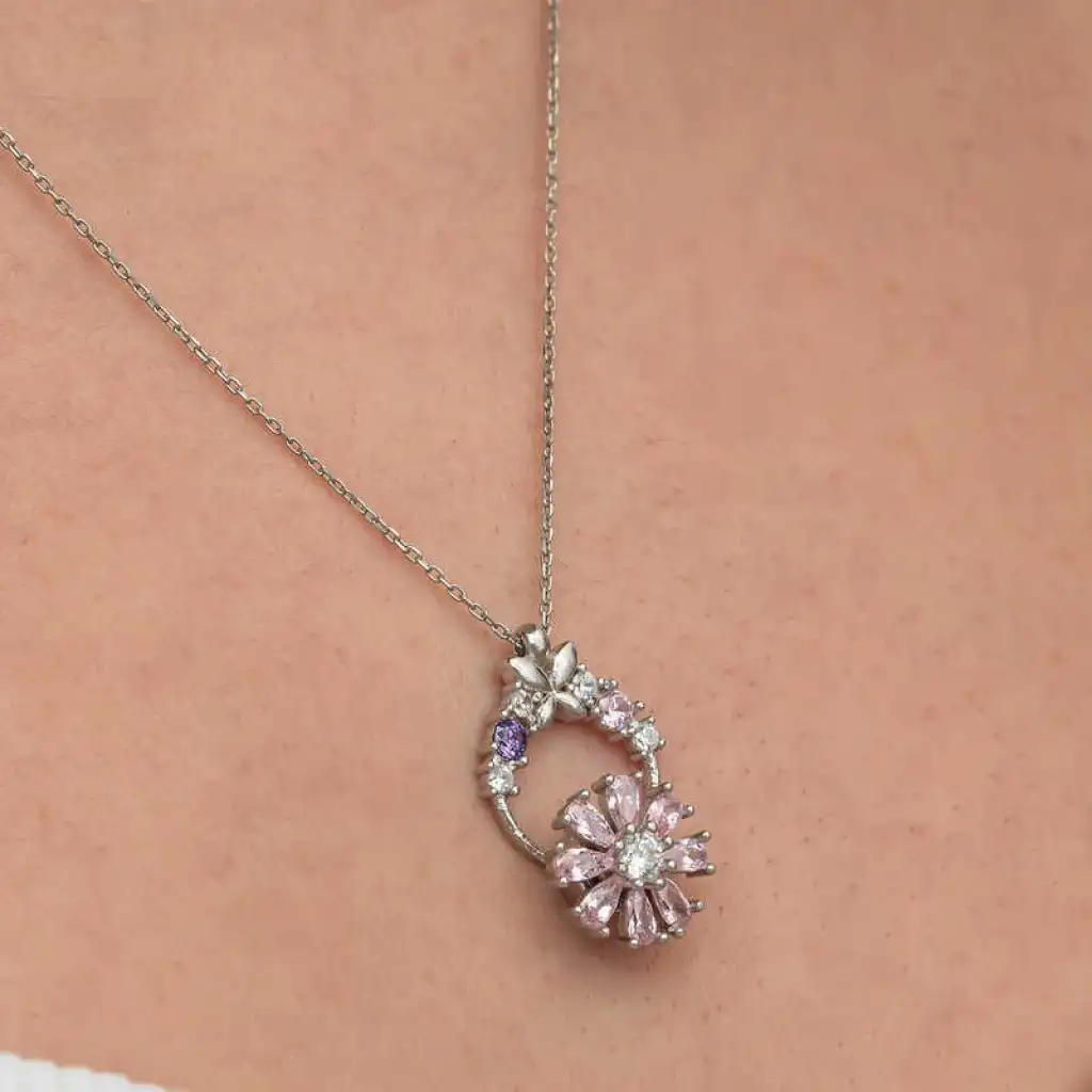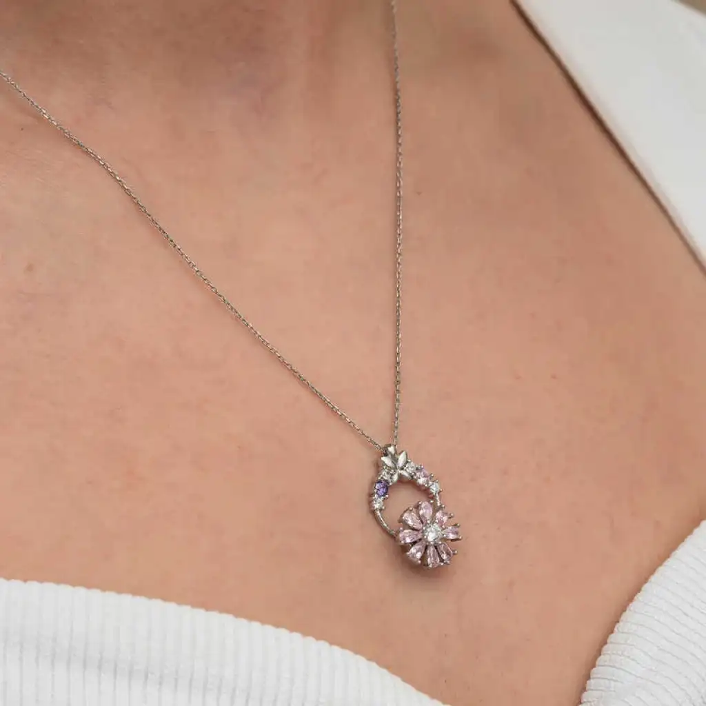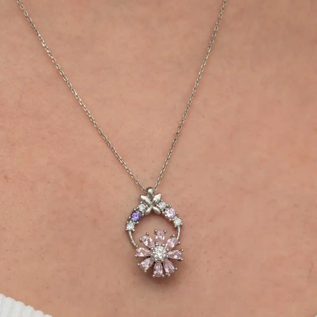 Gümüş Pembe Dönen Çiçek Kadın Kolye