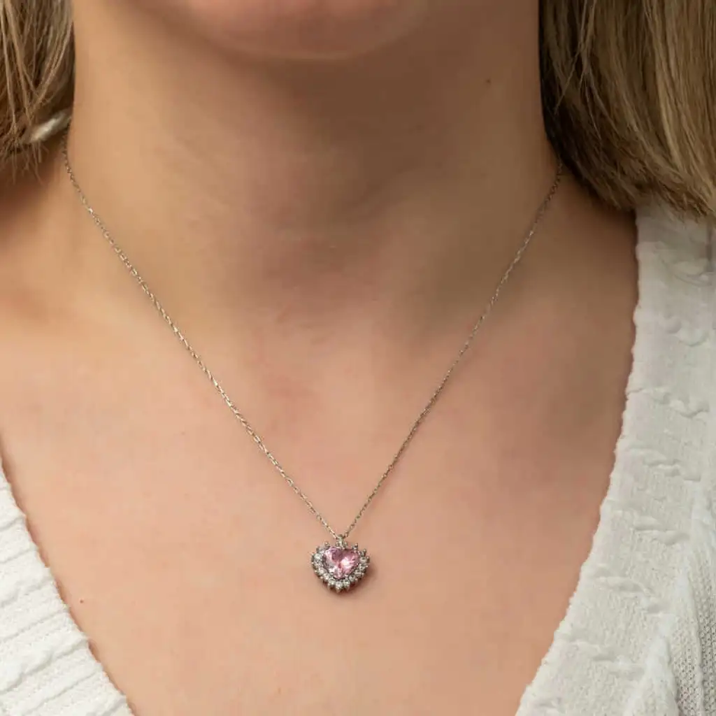 Gümüş Pembe Taşlı Kalp Kadın Kolye