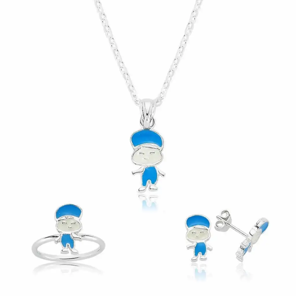Gümüş Pepee Çocuk SetÇocuklarımızın cıvıl cıvıl hayatlarına ve rengarenk hayal dünyalarına uygun olarak tasarlanan bu tatlı set ile çocukları mutlu edebilirsiniz. Bu tatlı set; 925 ayar gümüşten imal edilmiştir. Gümüş üzerine rodyum kaplama yapılmıştır. Rodyum kaplama yapılan gümüş çocuk setler parlaklığını uzun süre muhafaza eder ve oksitlenmesi gecikir. Tüm gümüş çocuk setlerde olduğu gibi gümüş pepee çocuk seti de tamamı el emeği ile üretilmiştir. Gümüş ve değerli taşlar nedeniyle belirtilen ortalama ürün ağırlığında ± %10 sapma olabilmektedir.