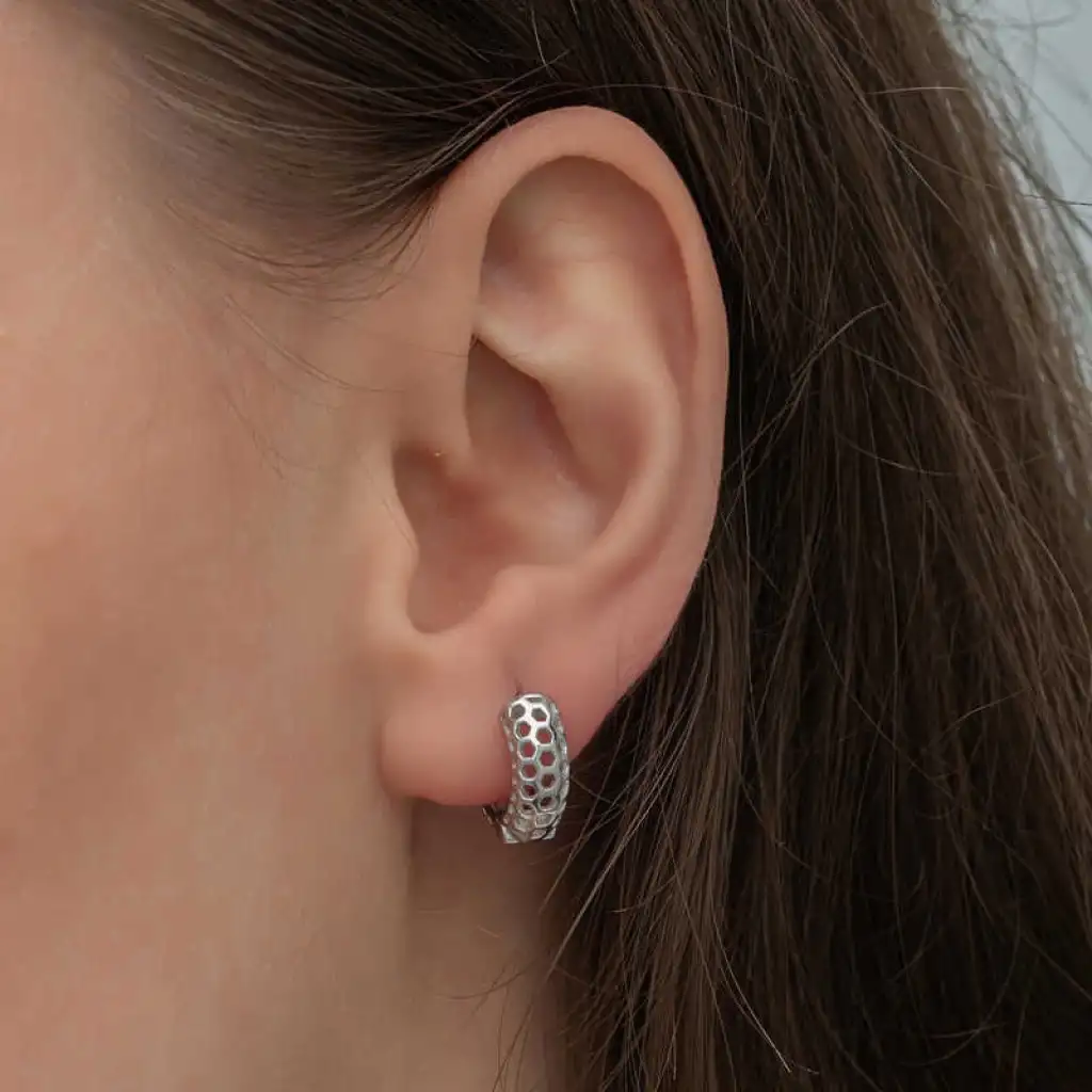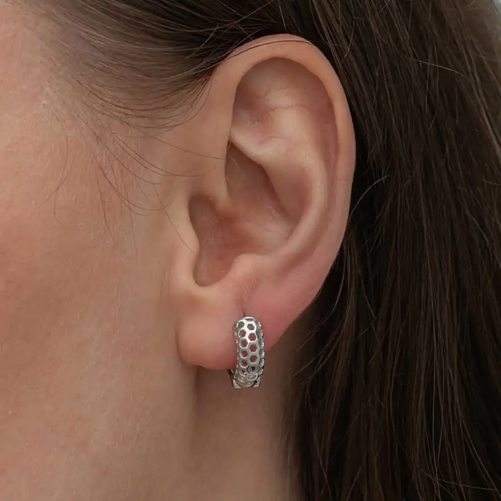 Şık ve spor bu halka küpeyi gündelik hayatta çok rahatça kullanabilirsiniz. Gümüş halka kadın küpe; doğum günü hediyesi, sevgililer günü hediyesi veya annelere hediye olarak özel günlerde tercih edilebilecek mükemmel bir seçenektir. Gümüş halka kadın küpe; 925 ayar gümüşten imal edilmiştir. Gümüş üzerine rodyum kaplama yapılmıştır. Rodyum kaplama yapılan gümüş petek desenli halka kadın küpe parlaklığını uzun süre muhafaza eder ve oksitlenmesi gecikir. Tüm kadın küpelerde olduğu gibi gümüş halka kadın küpe de el emeği ile üretilmiştir. Gümüş ve değerli taşlar nedeniyle belirtilen ortalama ürün ağırlığında ± %10 sapma olabilmektedir.