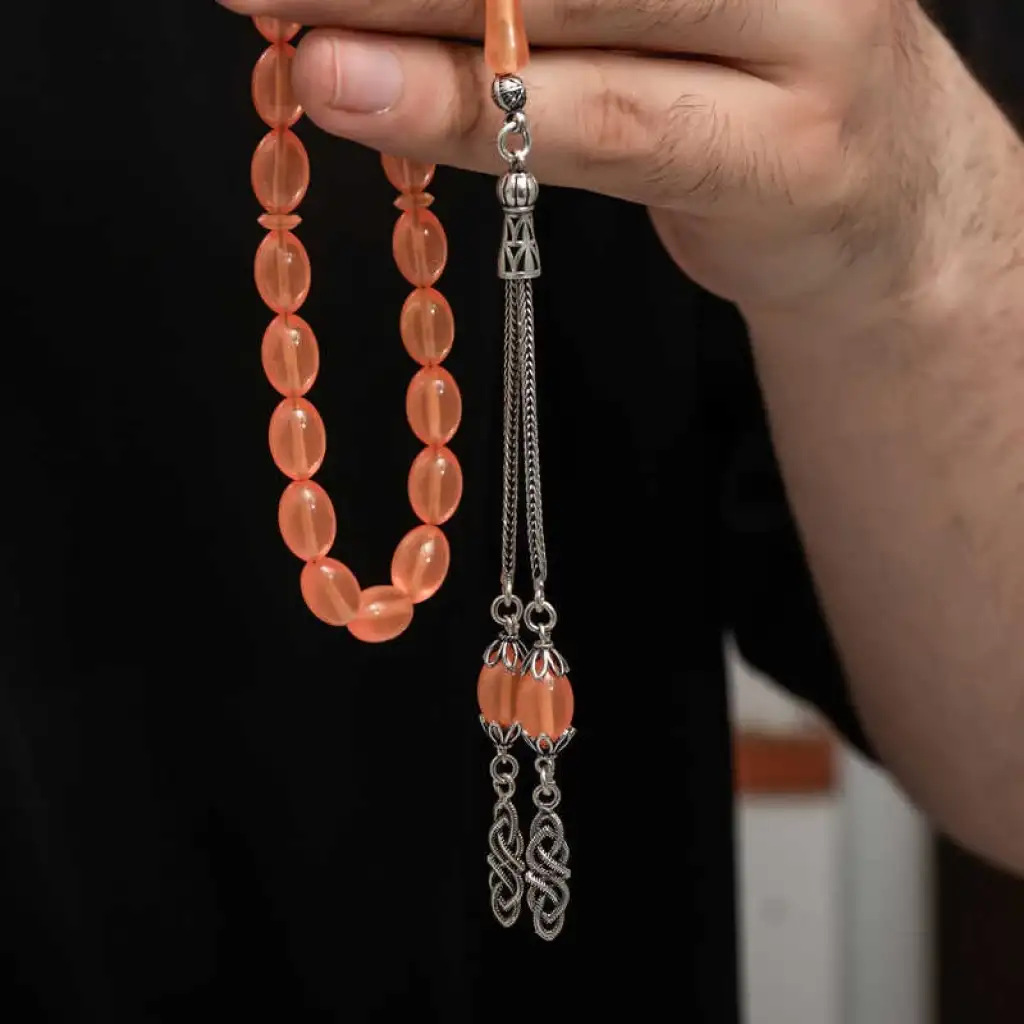 Gümüş Püskül Sıkma Kehribar Tesbih