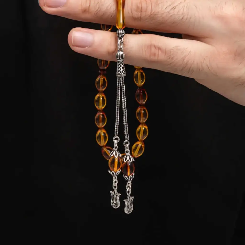 Gümüş Püskül Sıkma Kehribar Tesbih