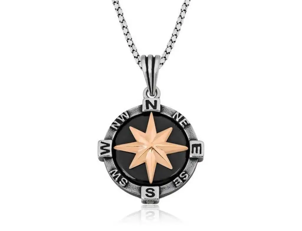 "Benim yönümde, yolumda sensin" diyenlerin tercihi pusula kolye sizleri bekliyor. Bu şık pusula kolye modeli 925 ayar gümüşten imal edilmiştir. Gümüş üzerine oksit kaplama yapılmıştır. Gümüş oksit, kaplanan ürünler hafif siyah renklendirmeye ve antik bir görünüm elde etmeye yarayan prosestir. Çift taraflı pusula kolye 925 ayar gümüşten imal edilmiştir. Gümüş ve değerli taşlar nedeniyle belirtilen ortalama ürün ağırlığında ± %10 sapma olabilmektedir.