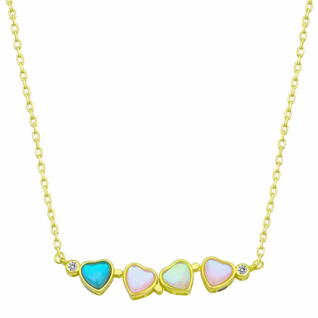 Dört yapraklı yonca bütün kültürlerde iyi şansın sembolü olarak kabul edilir. Birinci yaprak ümidi, ikincisi imanı, üçüncüsü aşkı, dördüncü yaprak ise şansı simgeler. Tabiatta çok nadir bulunan bu dördüncü yapraktır. Gümüş renkli zirkon taşlarla süslenmiş renkli kalpli açılabilen yonca kadın kolye, severek kullanabileceğiniz ve sevdiklerinize hediye edebileceğiniz harika bir modeldir. Gümüş renkli taşlı kadın kolye 925 ayar gümüşten imal edilmiştir. Gümüş kolye üzerinde gold kaplama yapılmıştır. Gold kaplama yapılan gümüş kadın kolyeler parlaklığını uzun süre muhafaza eder, oksitlenmesi gecikir. Gümüş olan zincir boyu ortalama 45 cm'dir. Tüm gümüş kadın kolye modellerimizde olduğu gibi gümüş renkli açılabilen yonca kadın kolye de el emeği ile üretilmiştir. 3 farklı şekilde kullanabilirsiniz. Gümüş ve değerli taşlar nedeniyle ürün ağırlığında ± %10 sapma olabilmektedir.
