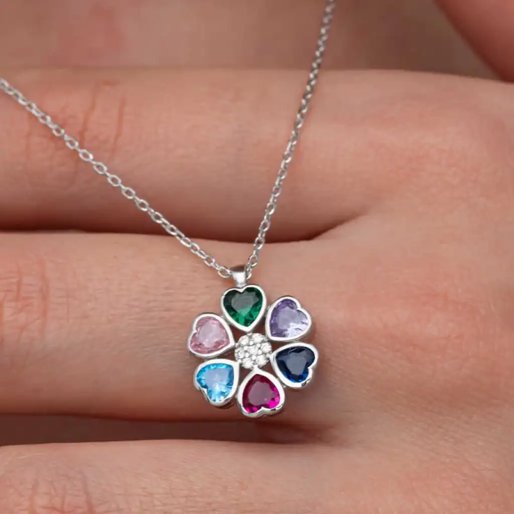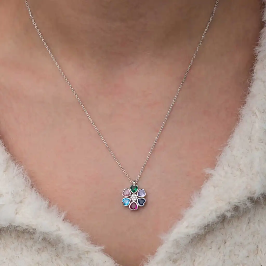 Renkli kalpli çiçek kolye genellikle sevgi, dostluk ve pozitif duyguların bir sembolü olarak kabul edilir. Renklerin çeşitliliği, hayatın farklı yönlerini ve duygusal renk paletini temsil edebilirken, kalp figürü de sevgi ve bağlılığı simgeler. Bu şık kolye; doğum günü hediyesi, sevgililer günü veya özel günlerde tercih edilebilecek mükemmel bir seçenektir.Kolye; 925 ayar gümüşten imal edilmiştir. Gümüş üzerine rodyum kaplama yapılmıştır. Gümüş ve değerli taşlar nedeniyle belirtilen ortalama ürün ağırlığında ± %10 sapma olabilmektedir.