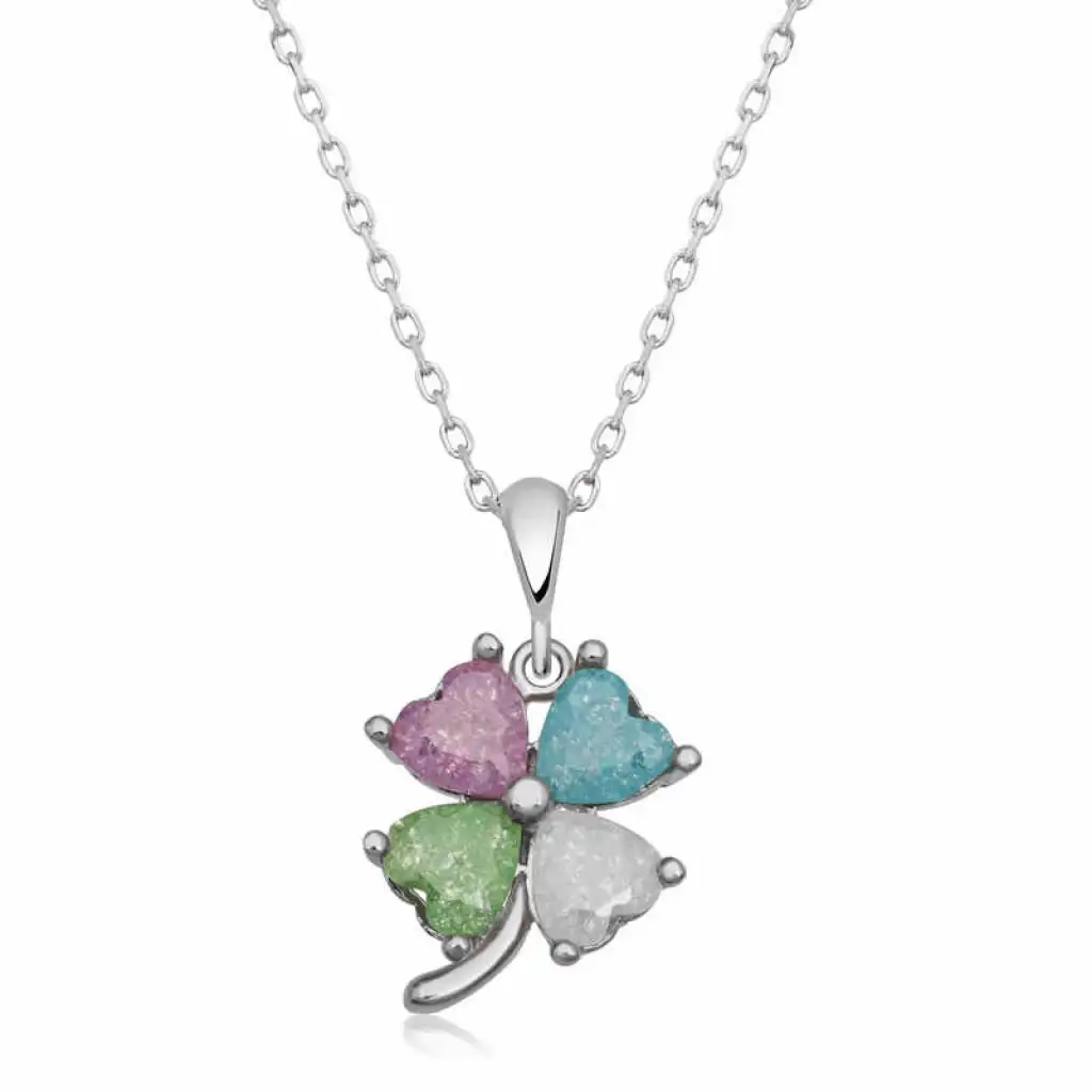 Gümüş Renkli Taşlı Kalp Yonca Kadın Kolye