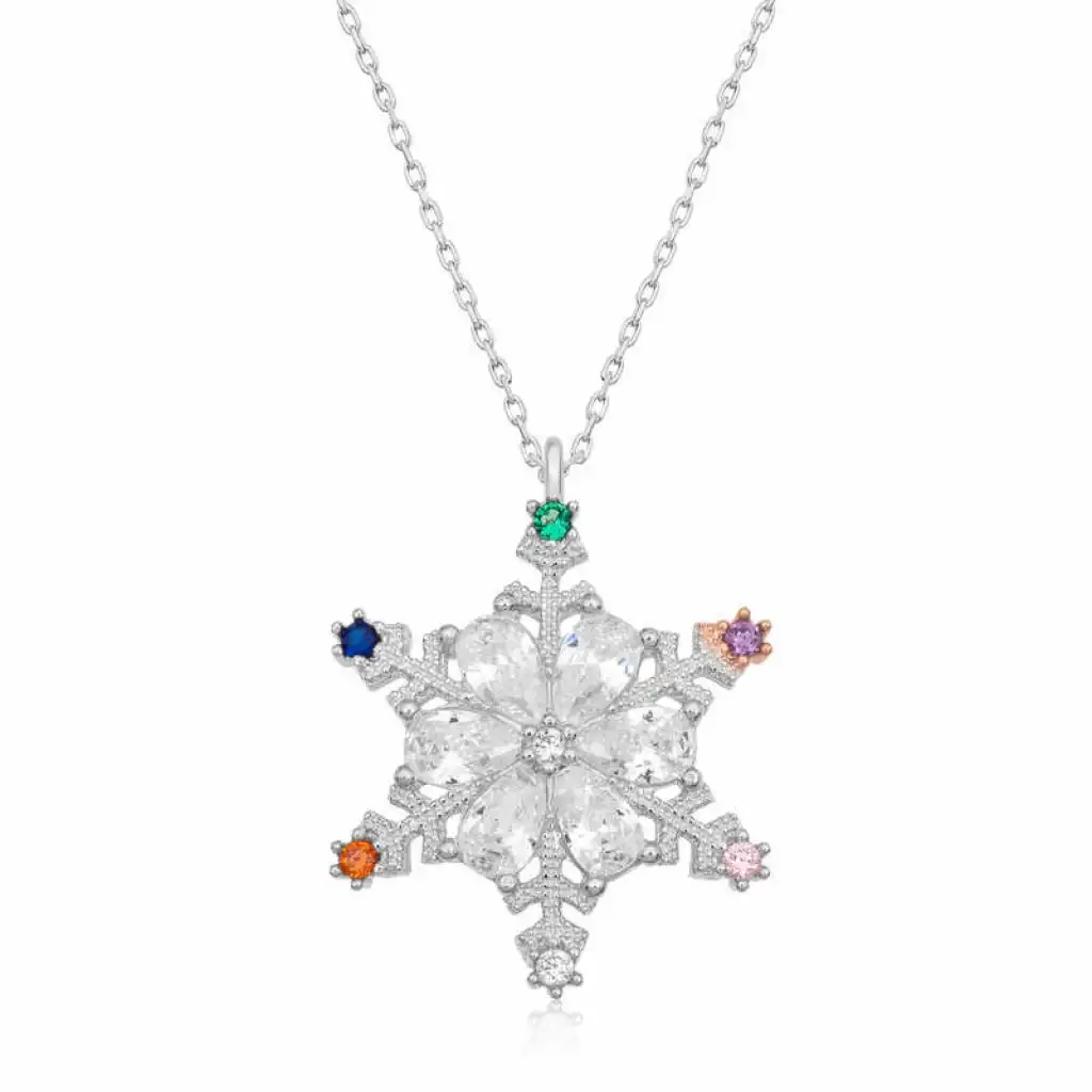Gümüş Renkli Taşlı Kar Tanesi Kadın Kolye