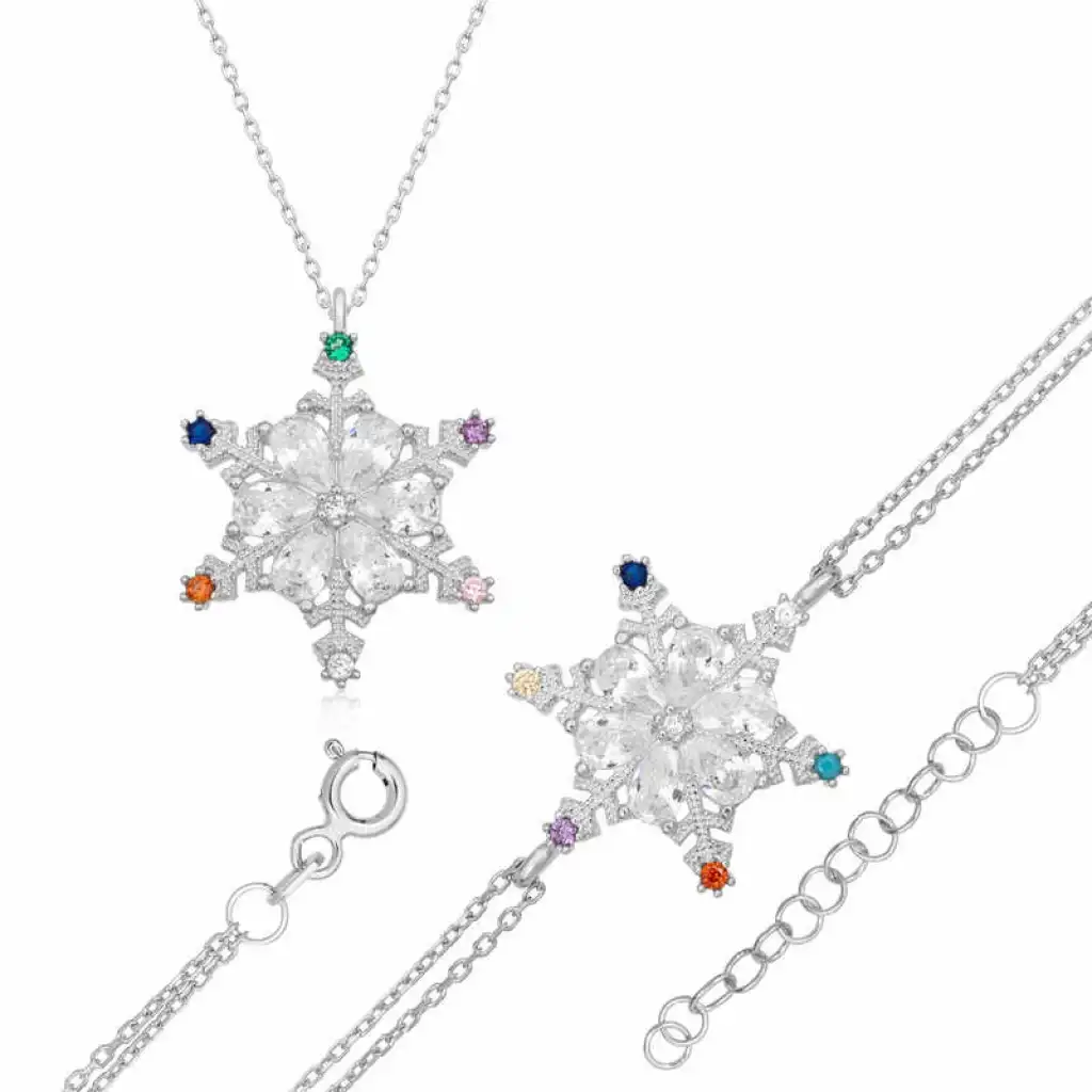 Gümüş Renkli Taşlı Kar Tanesi Kadın Set