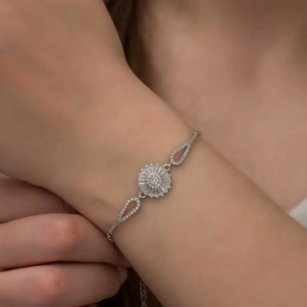 Modaya uyumlu şekilde tasarlanan gümüş bileklik modellerini hem gündelik yaşantınızda hem özel gün ve gecelerinizde şık bir şekilde kullanabilirsiniz. Yenilikçi her yaştan kadının beğenisine hitap eden ürünlerle kombinlerinizi tamamlayabilirsiniz. Her biri farklı bir stile hitap edebilen tasarımlarla sizler de spor, klasik ve alternatif giyim tarzlarınıza uygun modellerimizi tercih edebilirsiniz. Bu şık baget taşlı bileklik; doğum günü hediyesi, sevgililer günü hediyesi veya özel günlerde tercih edilebilecek mükemmel bir seçenektir. Gümüş baget ve zirkon taşlı bayan bileklik 925 ayar gümüşten imal edilmiştir. Bu bileklik üzerine rodyum kaplama yapılmıştır. Rodyum kaplama yapılan ürünler parlaklığını uzun süre muhafaza eder, oksitlenmesini geciktirir. Tüm gümüş bayan bileklik modellerinde olduğu gibi gümüş baget taşlı bayan bileklik modeli de el emeği ile üretilmiştir. Gümüş ve değerli taşlar nedeniyle belirtilen ortalama ürün ağırlığında ± %10 sapma olabilmektedir.