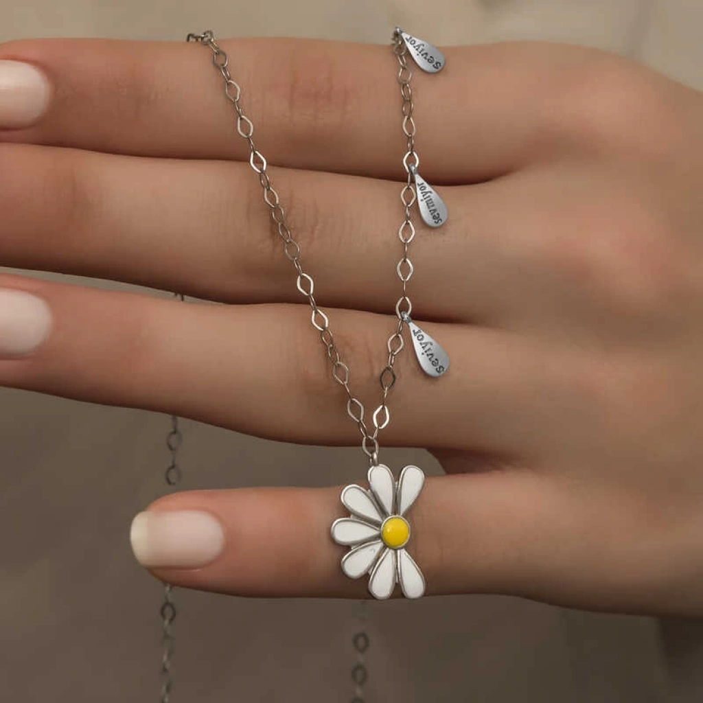 Gümüş Rodyum Papatya Seviyor Sevmiyor Bayan Kolye