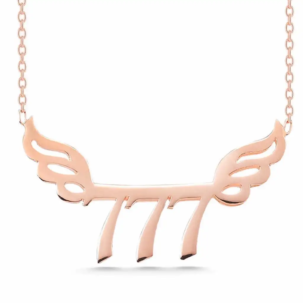 777 sayısının şans ve mutluluk getirme anlamına sahip olduğuna inanılmaktadır. Bunun yanında melek sayısı anlamına gelebilmektedir. Sevdiğiniz kadınlara özel günlerde sahip olduğu bu manevi anlam gözetilerek hediye edilebilecek takı tasarımları arasında yer almaktadır. Bu şık kolye; doğum günü hediyesi, sevgililer günü hediyesi veya annelere hediye olarak özel günlerde tercih edilebilecek mükemmel bir seçenektir. Kolye, 925 ayar gümüşten imal edilmiştir. Gümüş üzerine rose kaplama yapılmıştır. Rose kaplama yapılan gümüş kadın kolye modelleri parlaklığını uzun süre muhafaza eder, oksitlenmesi gecikir. Zincir boyu ortalama 45 cm'dir. Tüm gümüş kadın kolye modellerinde olduğu gibi bu gümüş 777 melek sayısı kadın kolye de tamamı el emeği ile üretilmiştir. Gümüş ve değerli taşlar nedeniyle belirtilen ortalama ürün ağırlığında ± %10 sapma olabilmektedir.