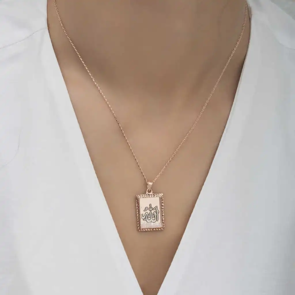 Gümüş Rose Allah Yazılı Kadın Kolye