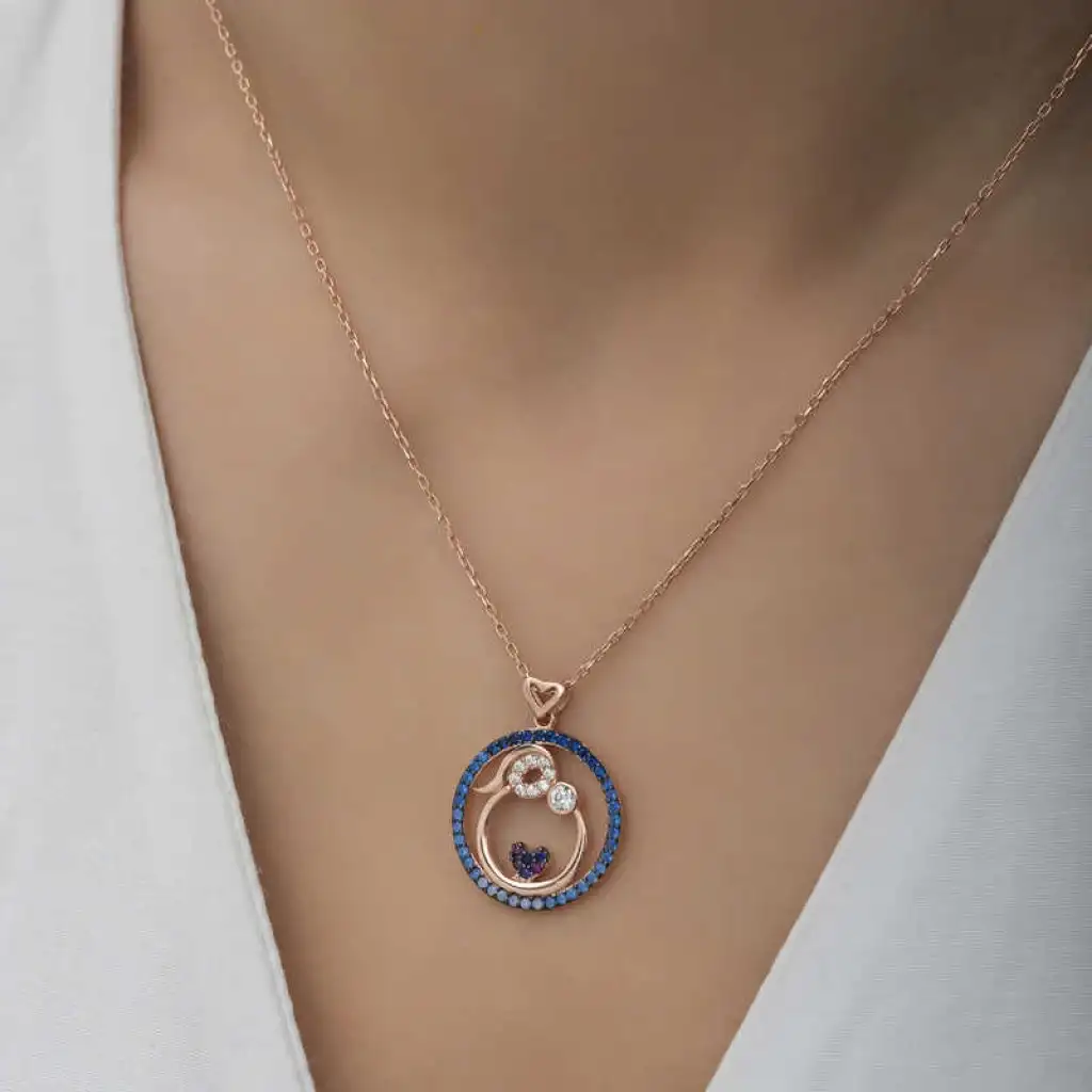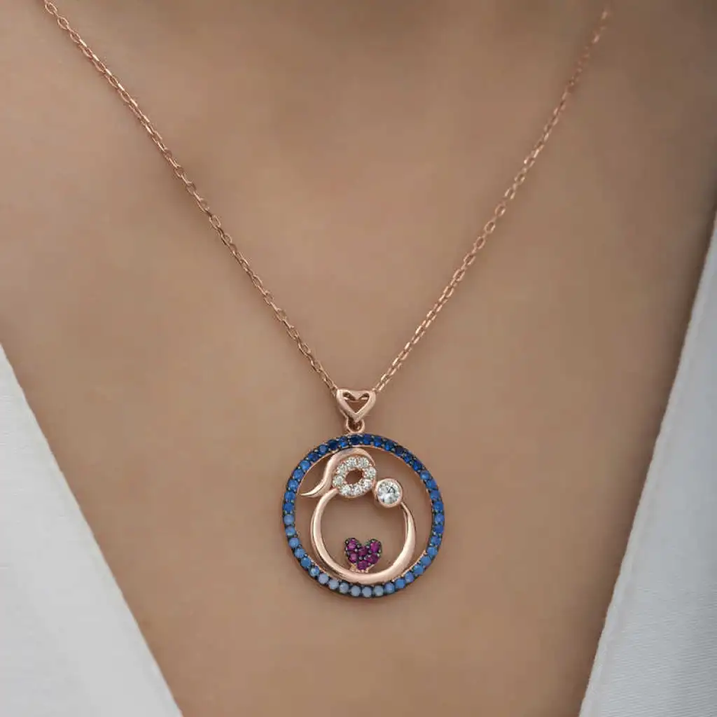 Anne ve çocuğu arasında kan bağı ve en önemlisi o büyük aşkı sizler için tasarladık... Bu duygusal kolye; doğum günü hediyesi, sevgililer günü hediyesi veya anneler gününde hediye olarak özel günlerde tercih edilebilecek mükemmel bir seçenektir. Bu şık tasarım 925 ayar gümüşten imal edilmiştir. Bu kolye üzerinde rose kaplama yapılmıştır. Rose kaplama yapılan kolyeler parlaklığını uzun süre muhafaza eder, gümüş rengini pembe renge çevirir ve oksitlenmeyi geciktirir.Tüm gümüş bayan kolyelerde olduğu gibi gümüş anne ve bebek sevgisi kolye de el emeği ile üretilmiştir. Gümüş ve değerli taşlar nedeniyle belirtilen ürün ağırlığında ± %10 sapma olabilmektedir.