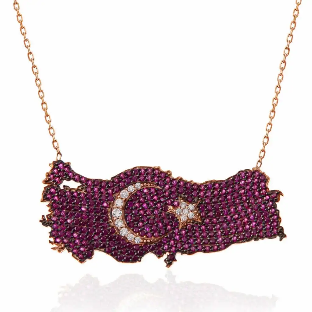 Gümüş Rose Ay Yıldız Türkiye Haritası Kadın Kolye