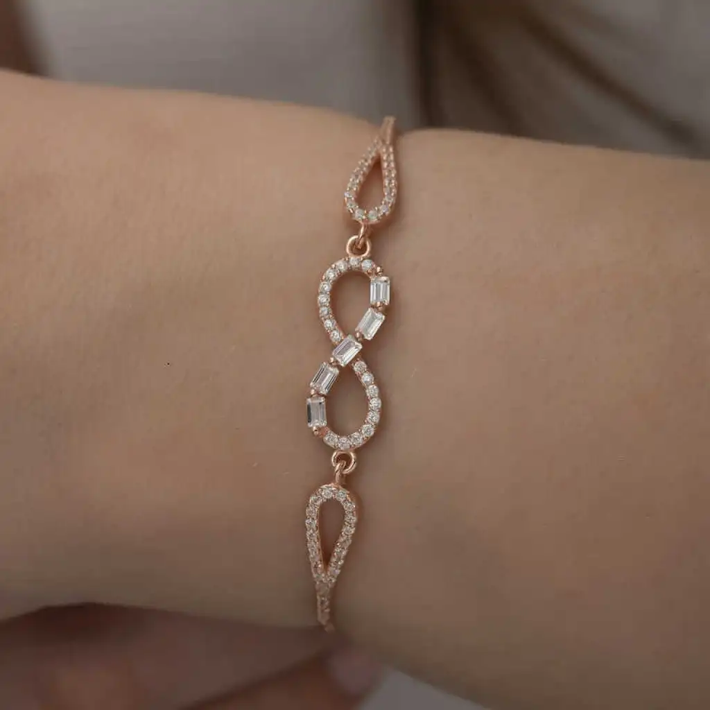 Gümüş Rose Baget Taşlı Sonsuzluk Bileklik