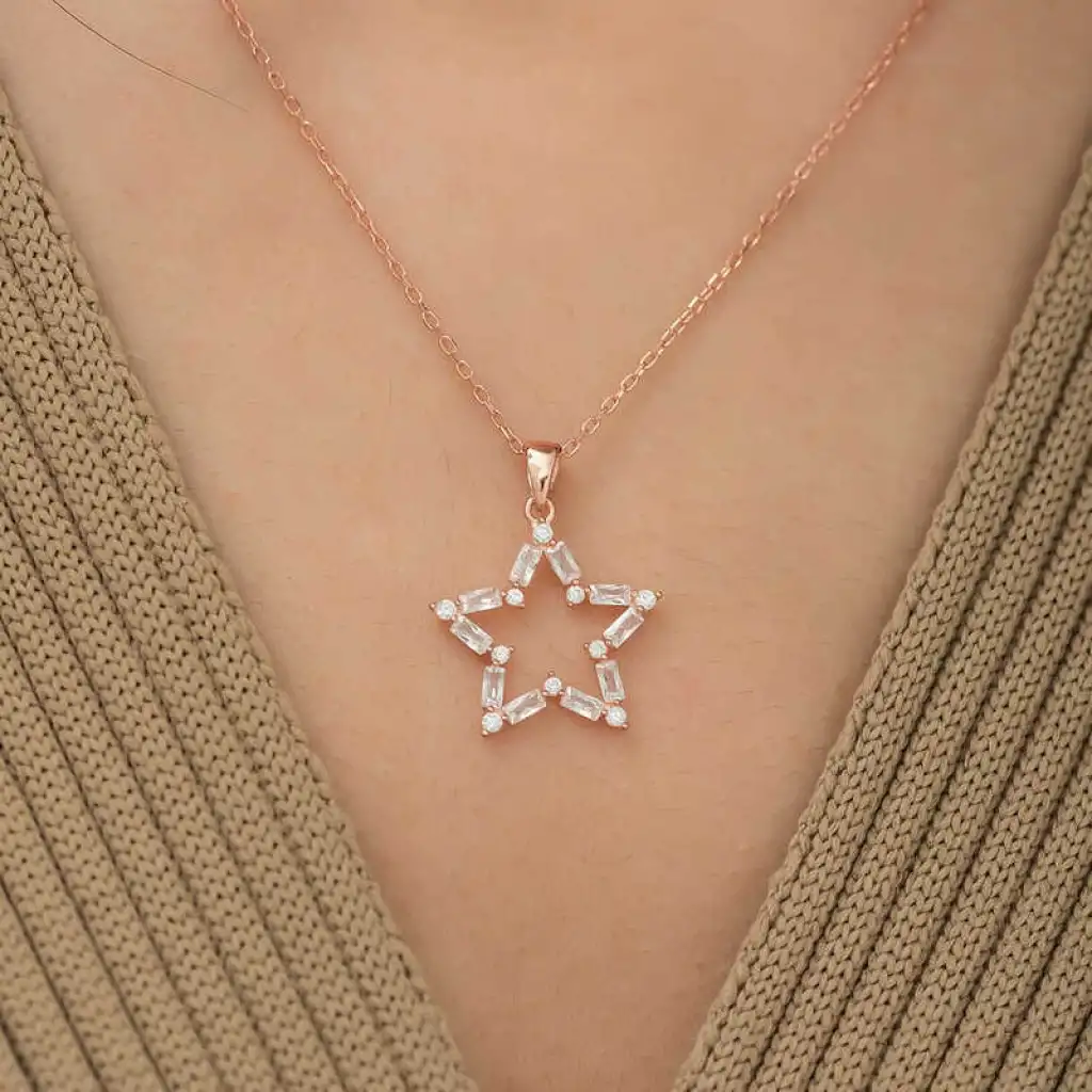 Gümüş Rose Baget Taşlı Yıldız Kolye