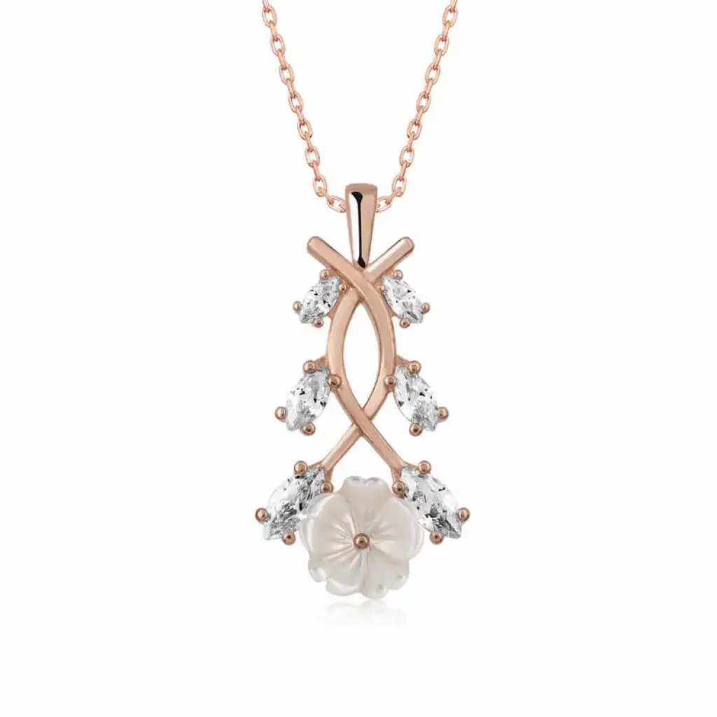 Havaların ısınmasıyla birlikte canlanan doğa, ilkbaharın geldiğini müjdeler. Yeşile bürünen ağaçlar, rengarenk çiçekler açar ve eşsiz kokuları ile bizi karşılar. Doğadan ilham alınarak tasarlanan bu kolye yeniden doğuşu ilkbaharı sembolize etmektedir. Bu şık kolye; doğum günü hediyesi, sevgililer günü veya özel günlerde tercih edilebilecek mükemmel bir seçenektir. Kolye; 925 ayar gümüşten imal edilmiştir.Gümüş üzerine rose kaplama yapılmıştır.Rose kaplama yapılan ürünler gümüşe pembe bakır rengi verir. Diğer kolyelerde olduğu gibi gümüş bahar çiçeği kolye de el emeği ile üretilmiştir. Gümüş ve değerli taşlar nedeniyle belirtilen ortalama ürün ağırlığında ± %10 sapma olabilmektedir.