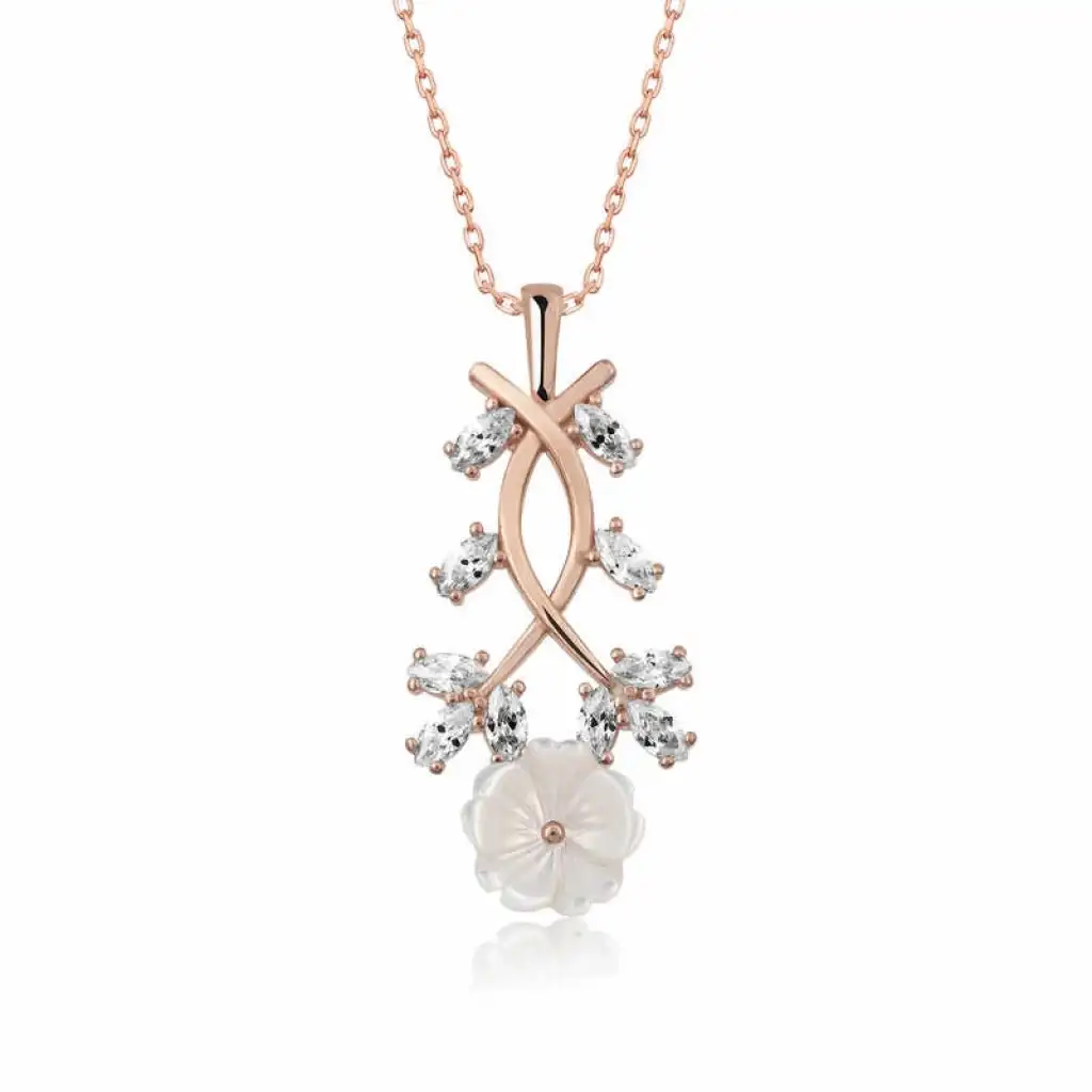 Gümüş Rose Beyaz Bahar Çiçeği Kolye
