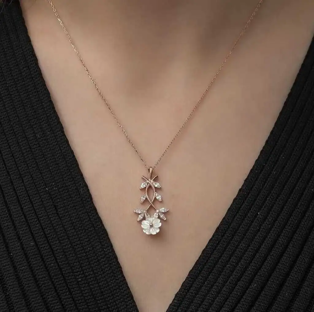 Havaların ısınmasıyla birlikte canlanan doğa, ilkbaharın geldiğini müjdeler. Yeşile bürünen ağaçlar, rengarenk çiçekler açar ve eşsiz kokuları ile bizi karşılar. Doğadan ilham alınarak tasarlanan bu kolye yeniden doğuşu ilkbaharı sembolize etmektedir. Bu şık kolye; doğum günü hediyesi, sevgililer günü veya özel günlerde tercih edilebilecek mükemmel bir seçenektir. Kolye; 925 ayar gümüşten imal edilmiştir. Gümüş üzerine rose kaplama yapılmıştır. Diğer kolyelerde olduğu gibi gümüş beyaz bahar çiçeği kolye de el emeği ile üretilmiştir. Gümüş ve değerli taşlar nedeniyle belirtilen ortalama ürün ağırlığında ± %10 sapma olabilmektedir.
