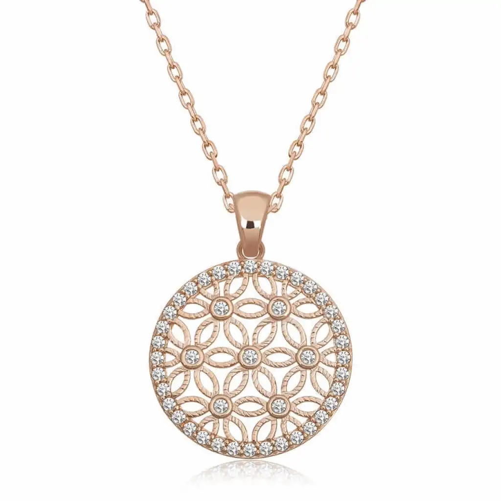Gümüş Rose Beyaz Taşlı Yaşam Çiçeği Kadın Kolye