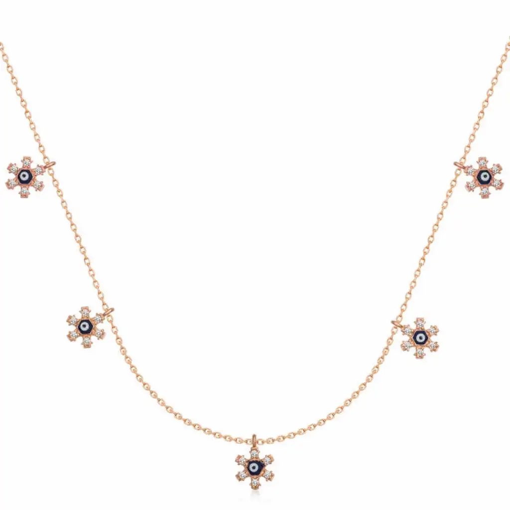 Gümüş Rose Çiçek Nazarlı Şans Kadın Kolye
