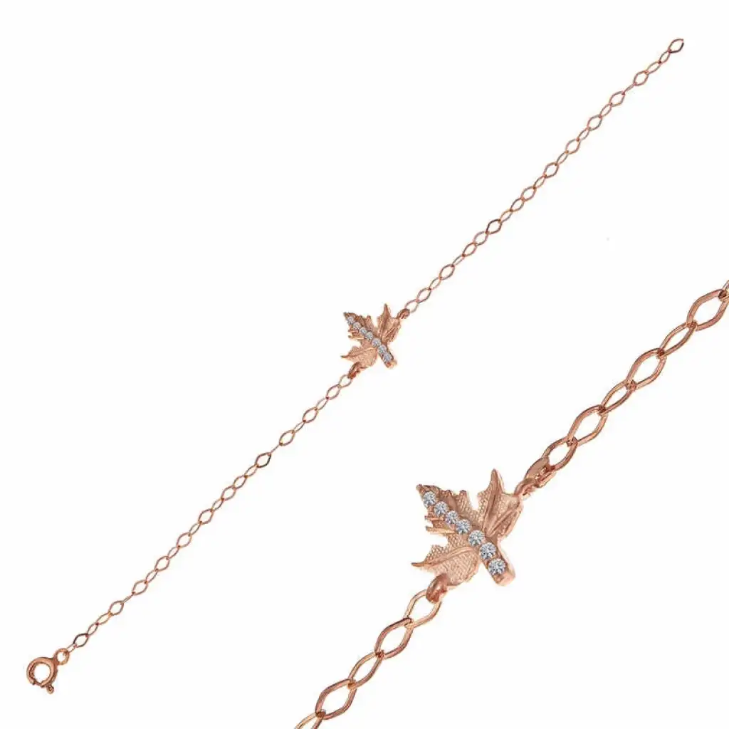 Gümüş Rose Çınar Yaprağı Kadın Bileklik