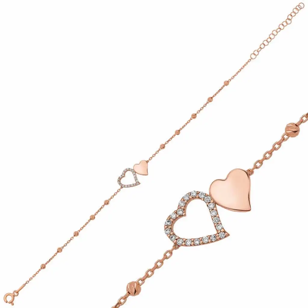 Gümüş Rose Dorissa İki Kalp Bayan Bileklik