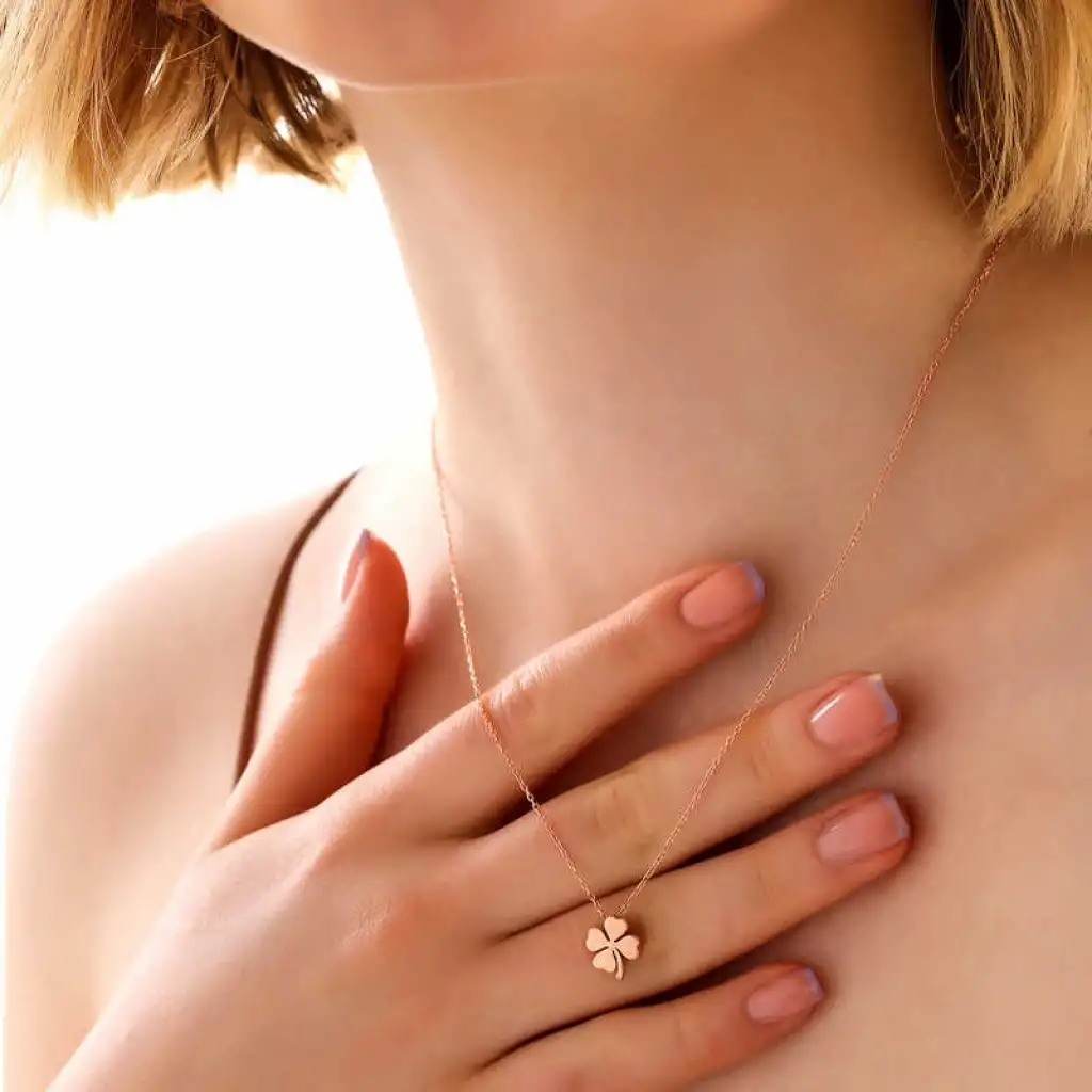 Gümüş Rose Dört Yapraklı Yonca Kadın Kolye