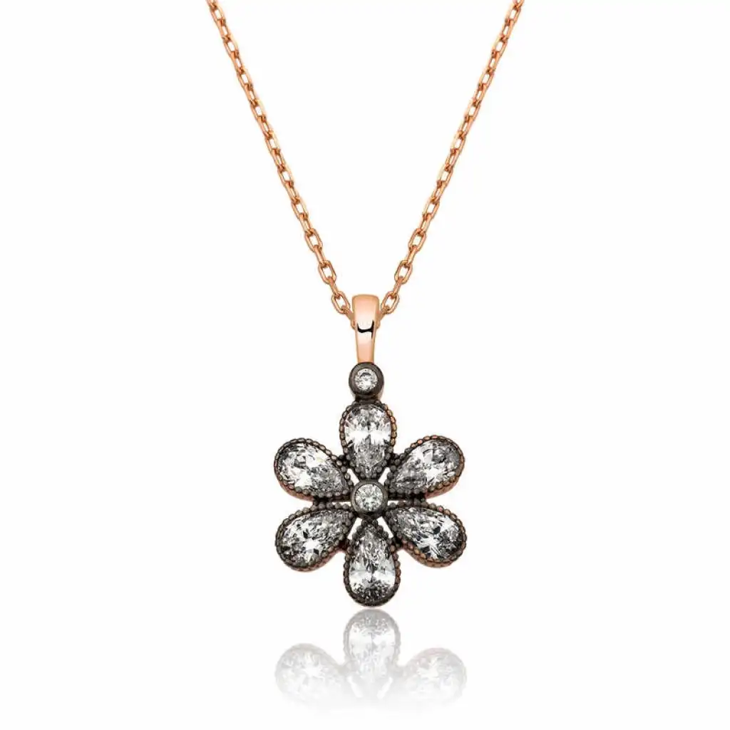 Gümüş Rose Elmas Montür Çiçek Bayan Kolye