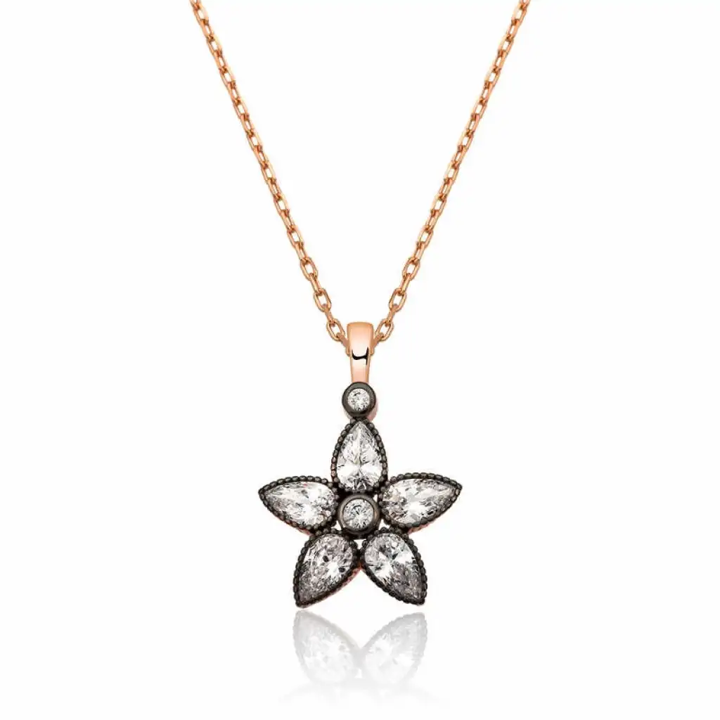 Gümüş Rose Elmas Montür Çiçek Bayan Kolye