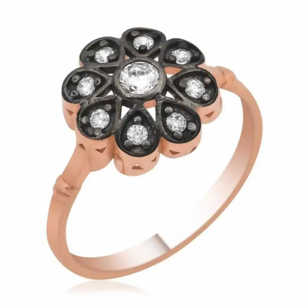 Gümüş Rose Elmas Montür Çiçek Bayan Yüzük