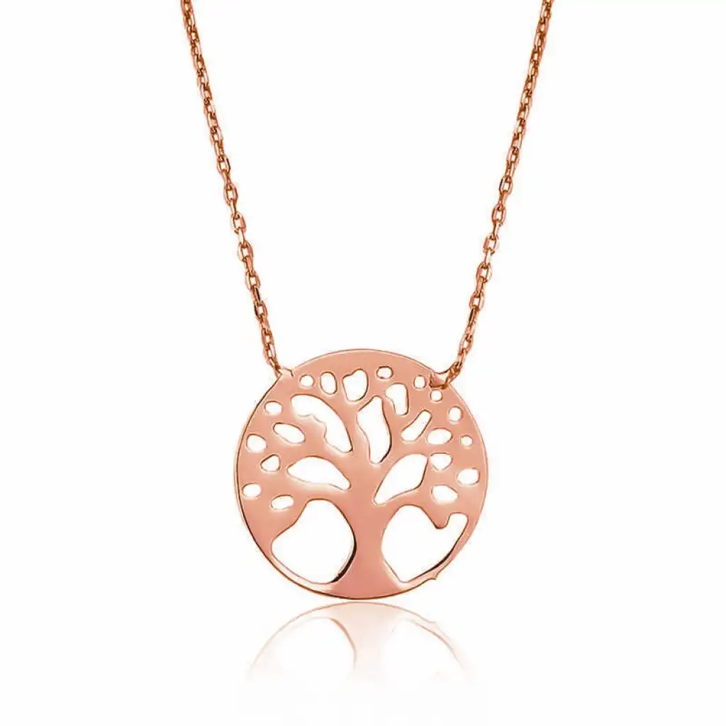 Hayat ağacı yeni bir yaşamı sembolize ediyor. Bunun yanında dünyada iz bırakmak, soyunu devam ettirme amacı yani ailenin simgesi anlamına gelmektedir. Bu şık kolye; 925 ayar gümüşten imal edilmiştir. Gümüş üzerine rose kaplama yapılmıştır. Rose kaplama yapılan ürünler parlaklığını uzun süre muhafaza eder ve oksitlenmeyi geciktirir. Tüm gümüş bayan kolyelerde olduğu gibi gümüş hayat ağacı bayan kolye de el emeği ile üretilmiştir. Gümüş ve değerli taşlar nedeniyle belirtilen ürün ağırlığında ± %10 sapma olabilmektedir.